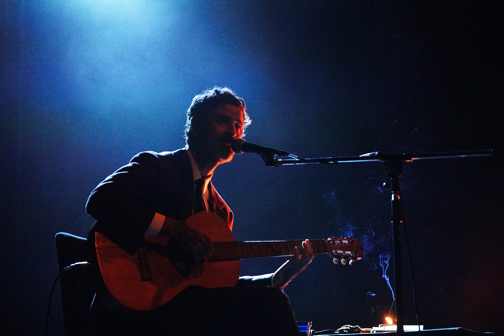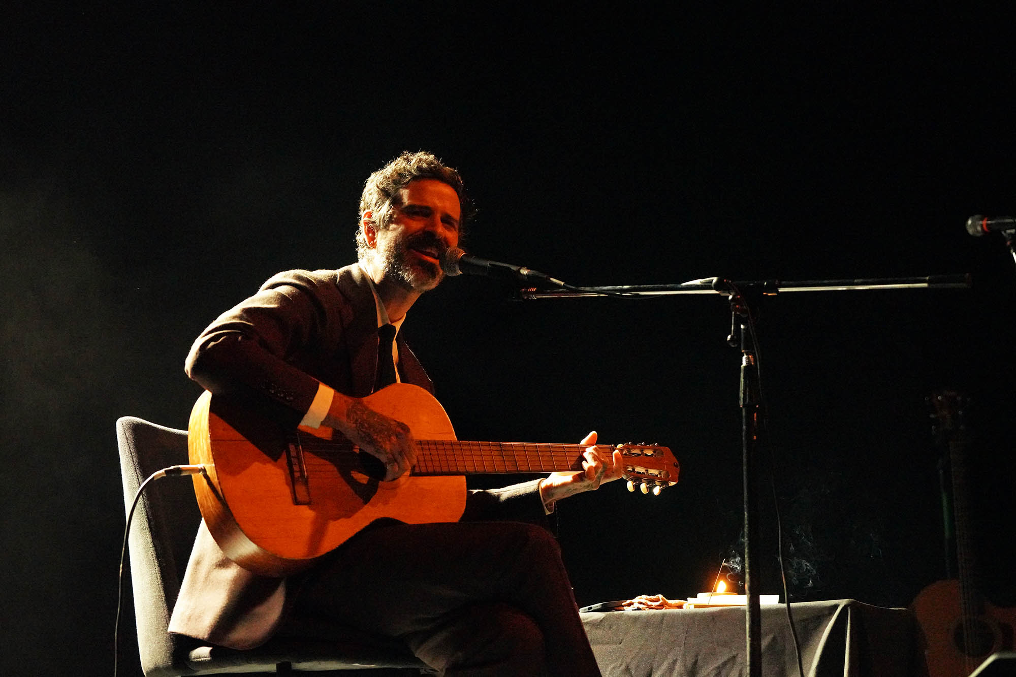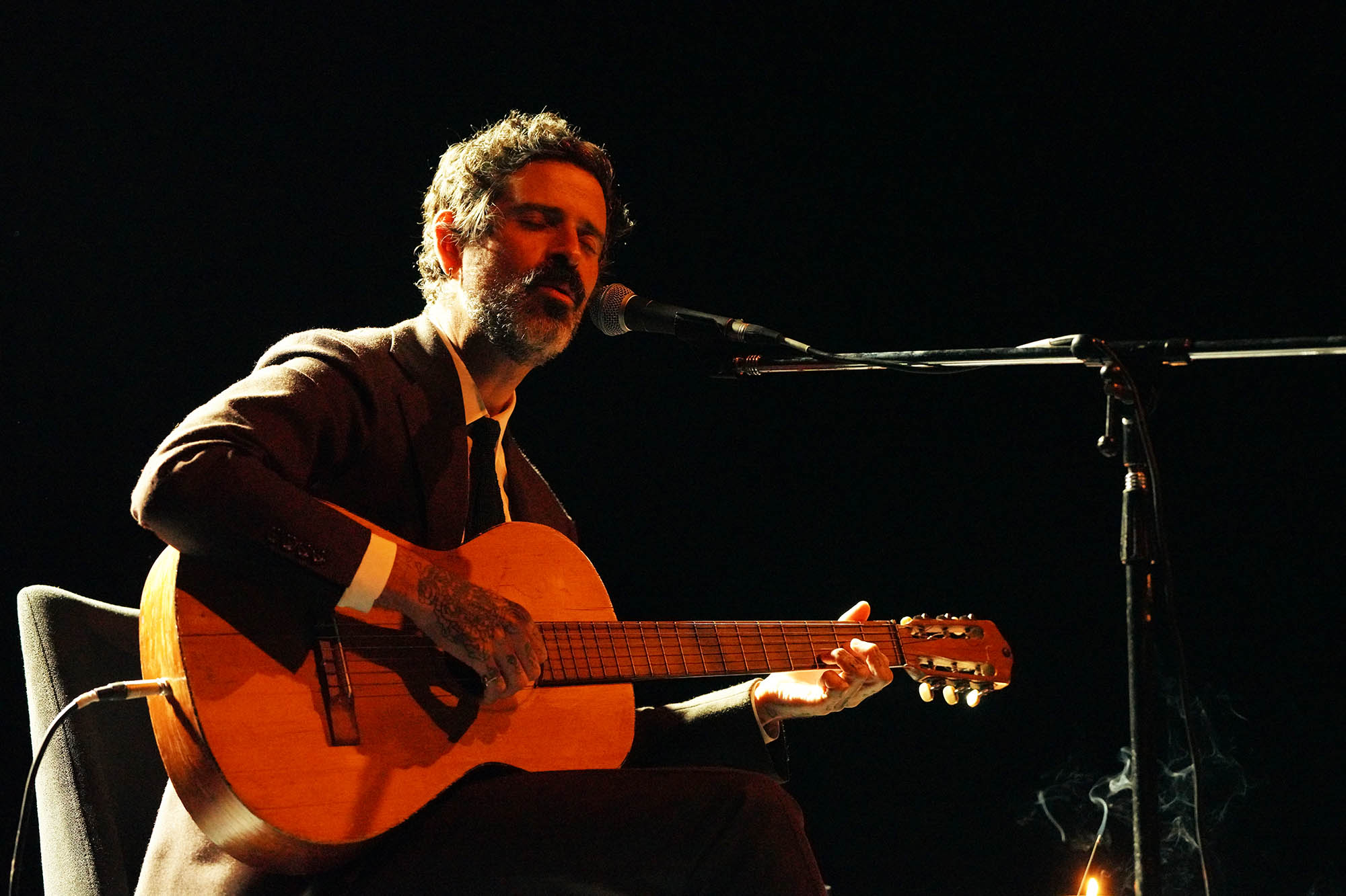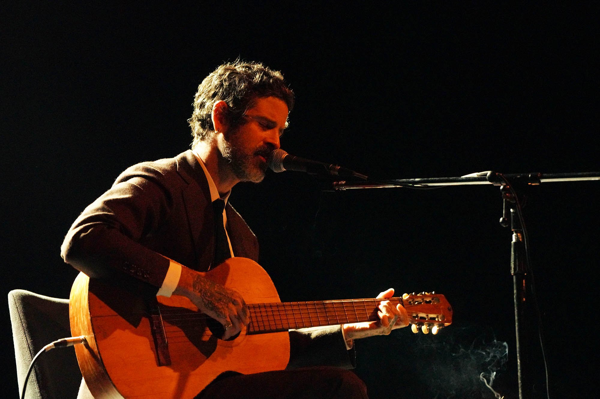 Ya con la guitarra española que sería su principal aliada durante gran parte de la noche, Banhart arremetió casi sin preámbulos con “A Sight to Behold”, y la sutileza de su arpegio y su voz tremolada funcionaron como un hechizo cautivante que tuvo a la platea sumergida en el más absoluto silencio durante su interpretación. Provisto solo de sus canciones, el héroe del freak folk logró erradicar así todo vestigio de charlas y cotilleos que pudieran interferir con la experiencia. Si su última visita había sido a tono con el fervor festivalero del Music Wins, aquí la estampa era exactamente inversa.