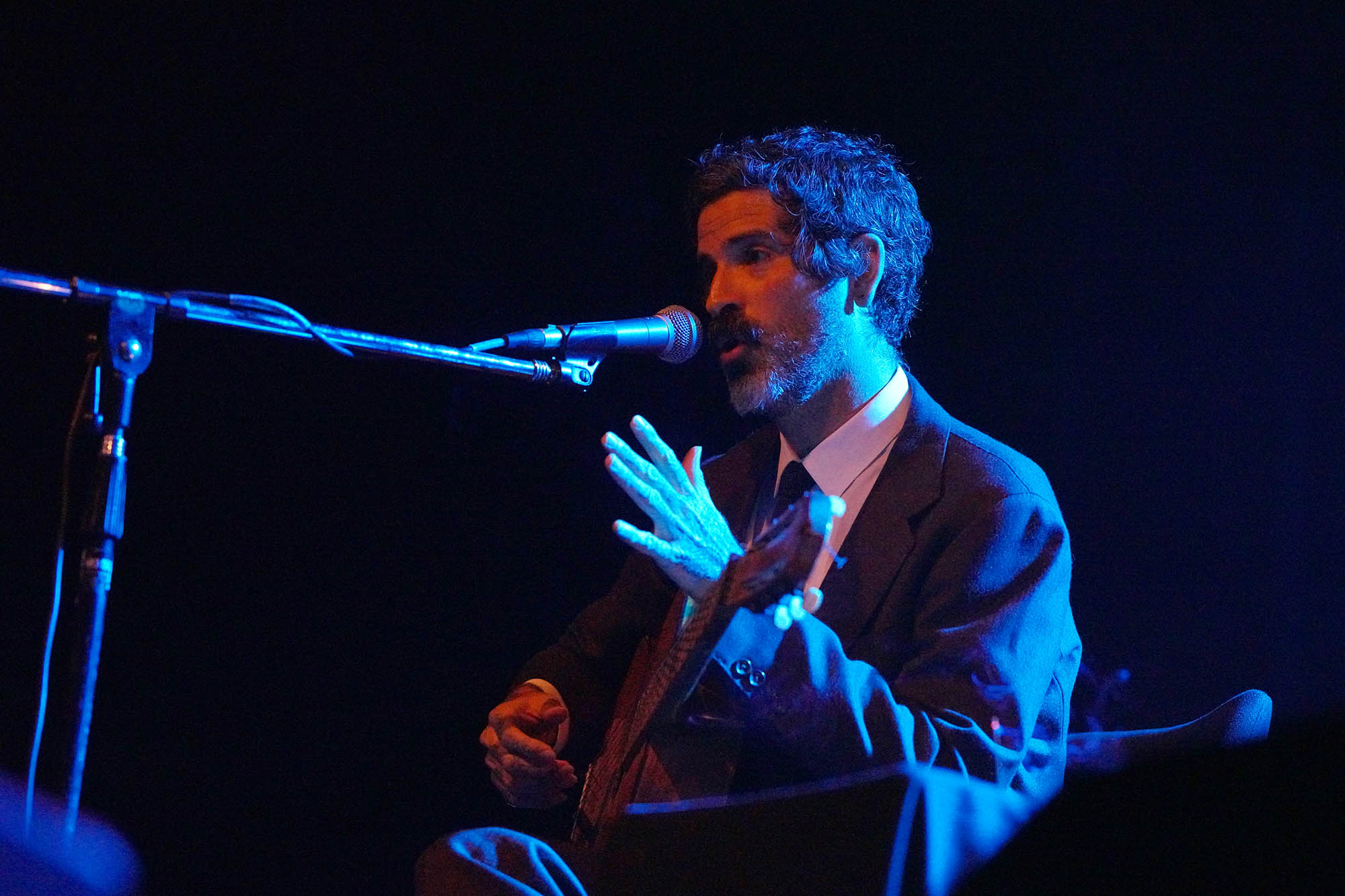 Pasada la primera canción, Devendra Banhart se tomó su tiempo para explicar en un español fluido en qué consistiría la noche: una selección de canciones interpretadas en orden cronológico, intercaladas con varios momentos de espíritu stand up acaso para descomprimir tanta fragilidad microscópica. Así, después de tocar “The Body Breaks” le sacó toda mística a “Little Yellow Spider al contar que fue compuesta mirando una araña en un estacionamiento, y poco después reconoció que “At the Hop” (una canción que lo hizo conocido por fuera del nicho folk en 2004 y que fue utilizada en varios comerciales) había sido compuesta después de un mal viaje con anfetaminas.