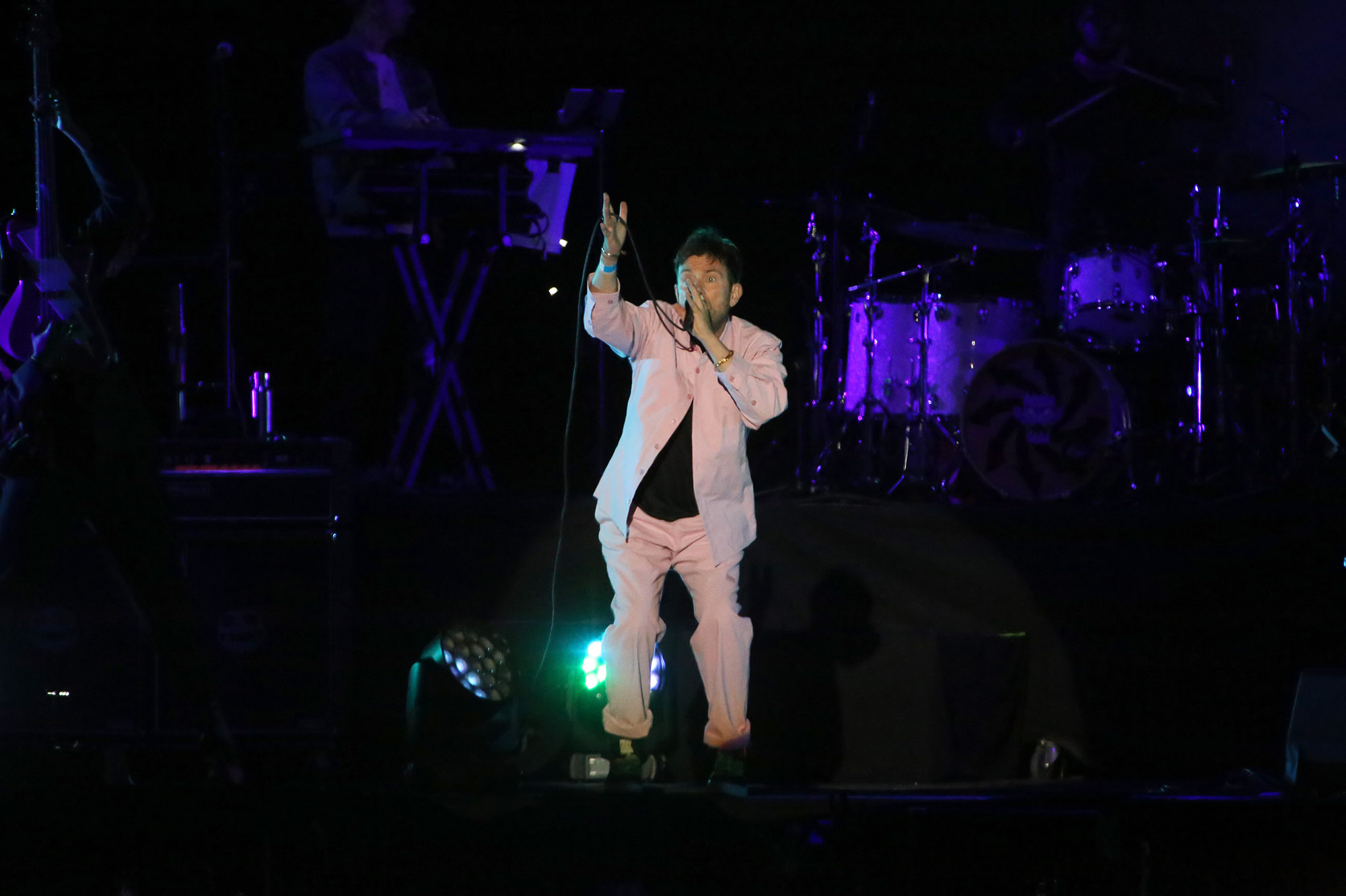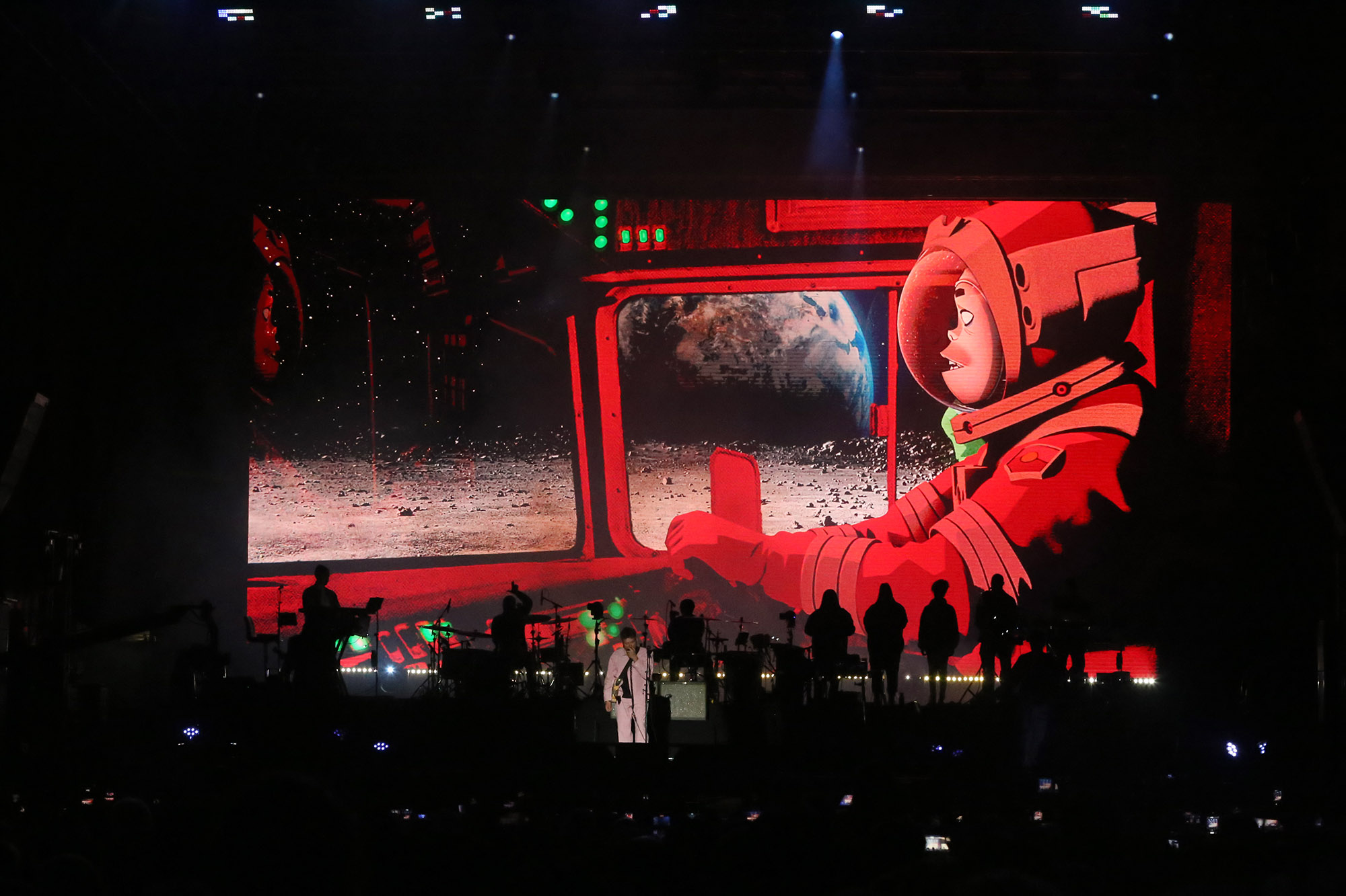 Melódica en mano, Albarn comandó una lectura fiel de “Tomorrow Comes Today”, el primer hit de Gorillaz, con animaciones de fondo fechadas en 2000. “Rhinestone Eyes”, en cambio, lo encontró en modo eufórico: después de arrodillarse para enfatizar la súplica de su letra bajo a la fosa para rematar el tema sobre el público, y volvió al escenario con una bandera de Argentina que se mantuvo sobre sus hombros para “19/2000” y “Cracker Island”, un estreno que lo tuvo a Thundercat aportando música y delirio desde la pantalla de fondo. Después de todo eso, “O Green World” funcionó como un resumen concentrado de todo lo que pasa por la cabeza del creador de Gorillaz, con una balada flemática al piano que, oscilación de cinta mediante, se convirtió en una fiesta de pulso electrónico, para ir y volver en reiteradas ocasiones.