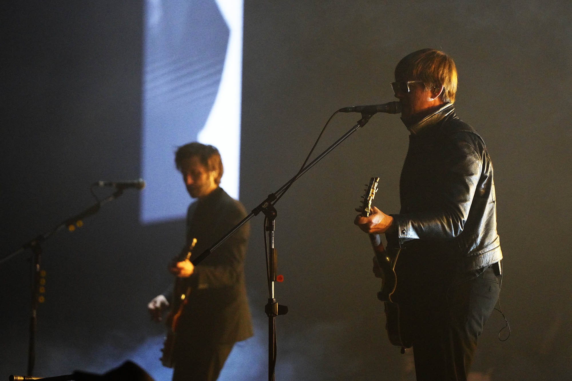 En medio de un escenario penumbroso que se mantendría así casi a lo largo de toda la noche, la banda salió a escena con solo dos de sus miembros originales: Banks y el guitarrista Daniel Kessler. En la otra punta del escenario, el bajista Brad Tuax se encargó de replicar nota por nota lo interpretado por Carlos Dengler, que abandonó la banda en 2010, mientras que para esta gira el baterista Sam Fogarino estuvo ausente con aviso para reponerse de una cirugía de columna, por lo que su lugar fue ocupado por Chris Broome. En un español fluido gracias a los años que pasó en España y México, Banks anticipó cómo transcurriría la noche: primero con el repaso de Antics, y luego con el de …Bright Lights. Esa inversión del orden cronológico desacomodó mínimamente las cosas, pero lo justo y lo necesario para sumar algún que otro factor sorpresa y no facilitar el guión.