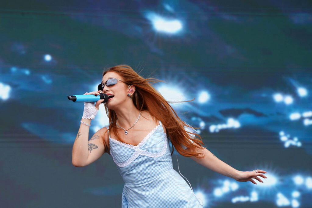 El de Addison Rae es un caso raro. Tras un comienzo como creadora de contenido en TikTok, comenzó a la par una faceta como actriz y otra como cantante, que la trajo a Lollapalooza por primera vez. Su performance, sin embargo, tuvo más de performance escénica que de ejecución musical: vestida con ropa interior de encaje, Rae no disimuló el uso de pistas vocales durante su set, y ni siquiera su público parecía inmutarse cuando su voz seguía sonando fuerte y clara a pesar de que ella no estaba moviendo la boca. Su paso por el Hipódromo trajo 60 minutos de hyperpop, el terreno donde Charli XCX planta bandera, de ahí que sonara su versión de “Von Dutch” que a esta altura ya puede reclamar como propia. Otra referente, Britney Spears, apareció en forma de sampleo de “…Baby One More Time” en “I got it Bad”. Con el pasar de las canciones, el grado de excitación de Rae fue en aumento, casi más que el de su propio público, como si su expansión global la hubiera tomado de sorpresa.