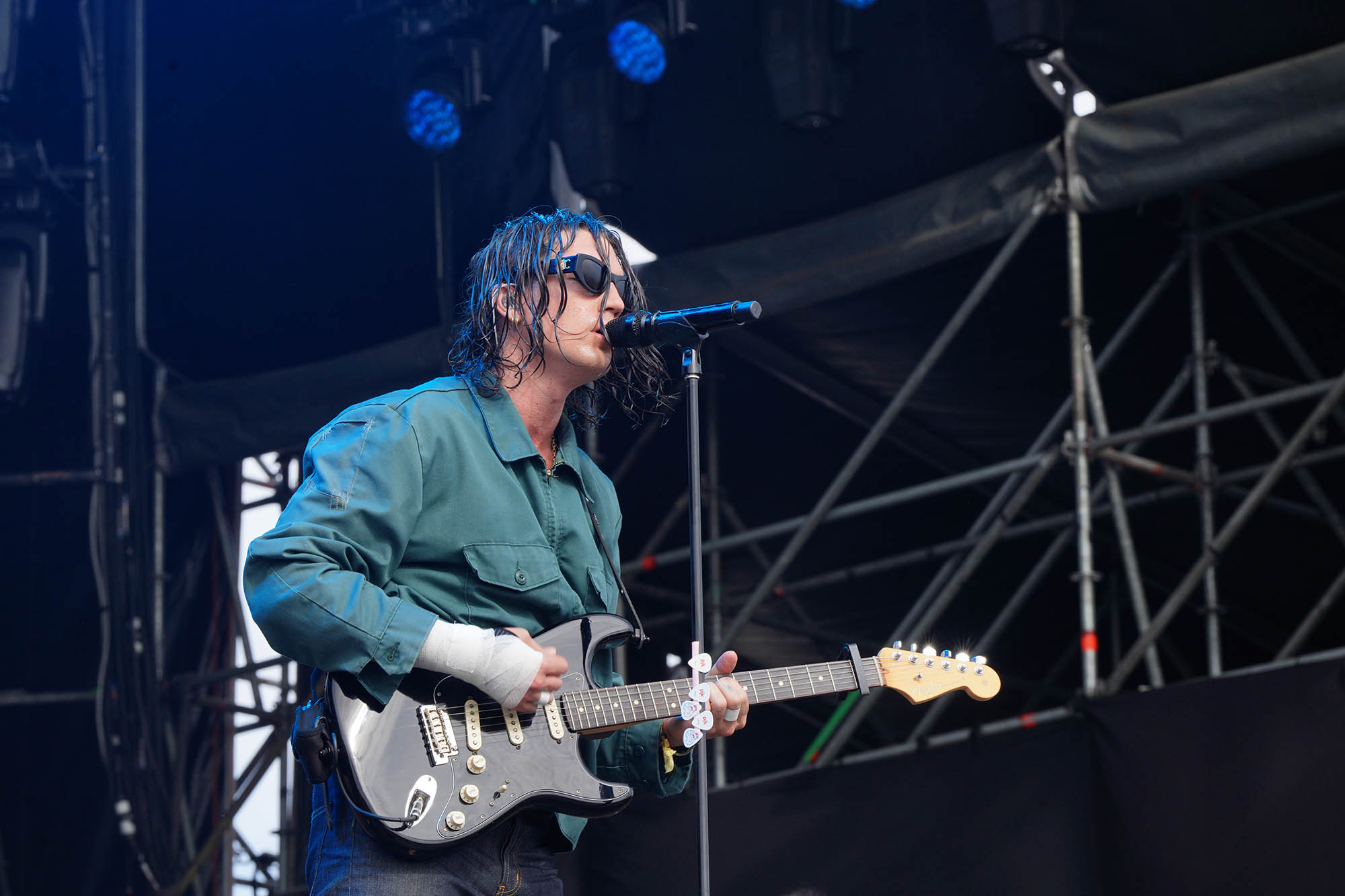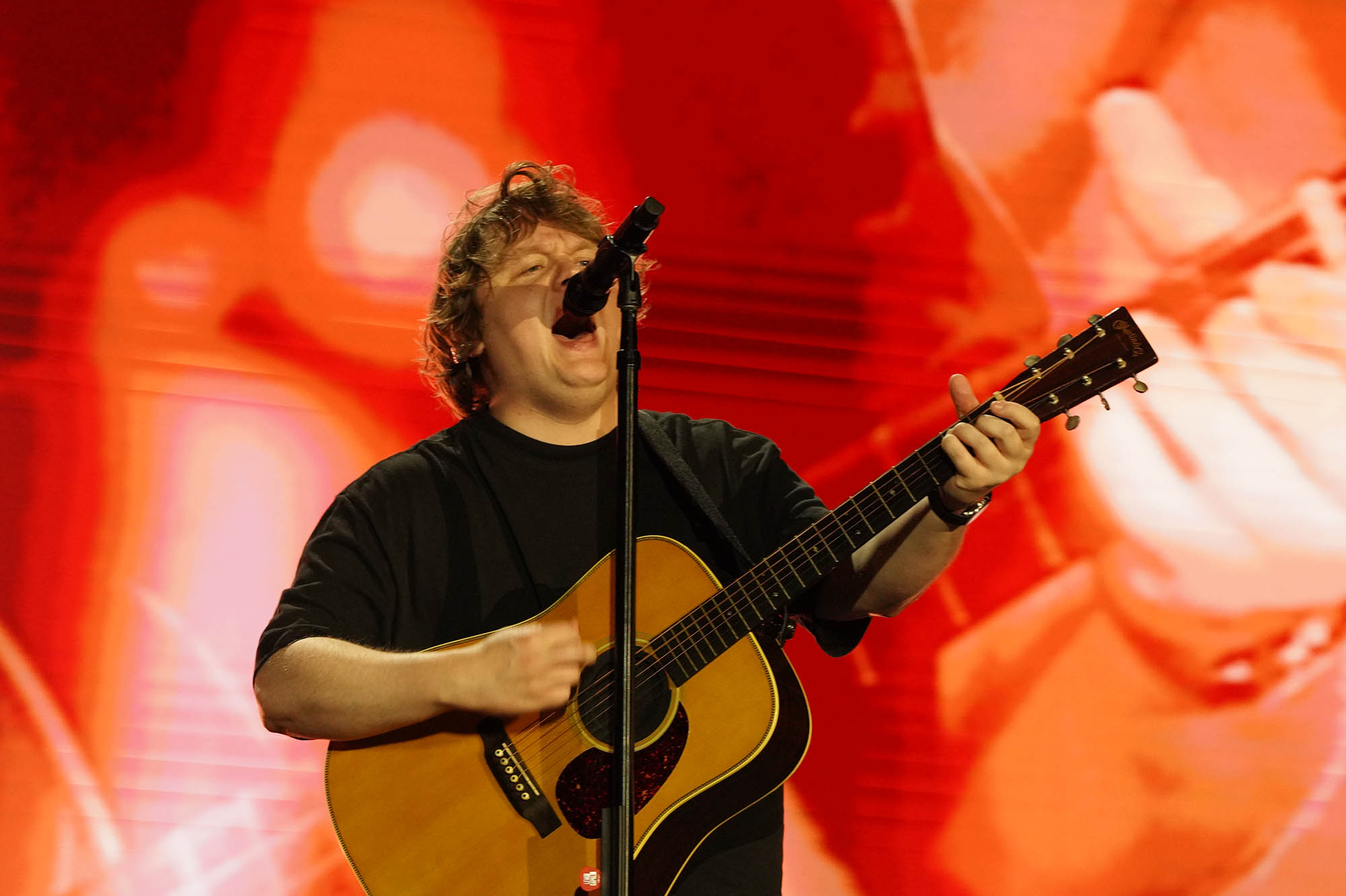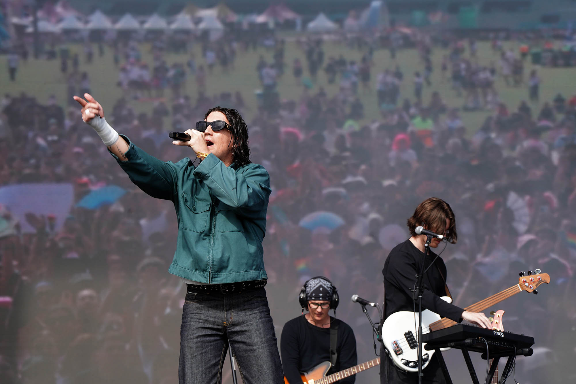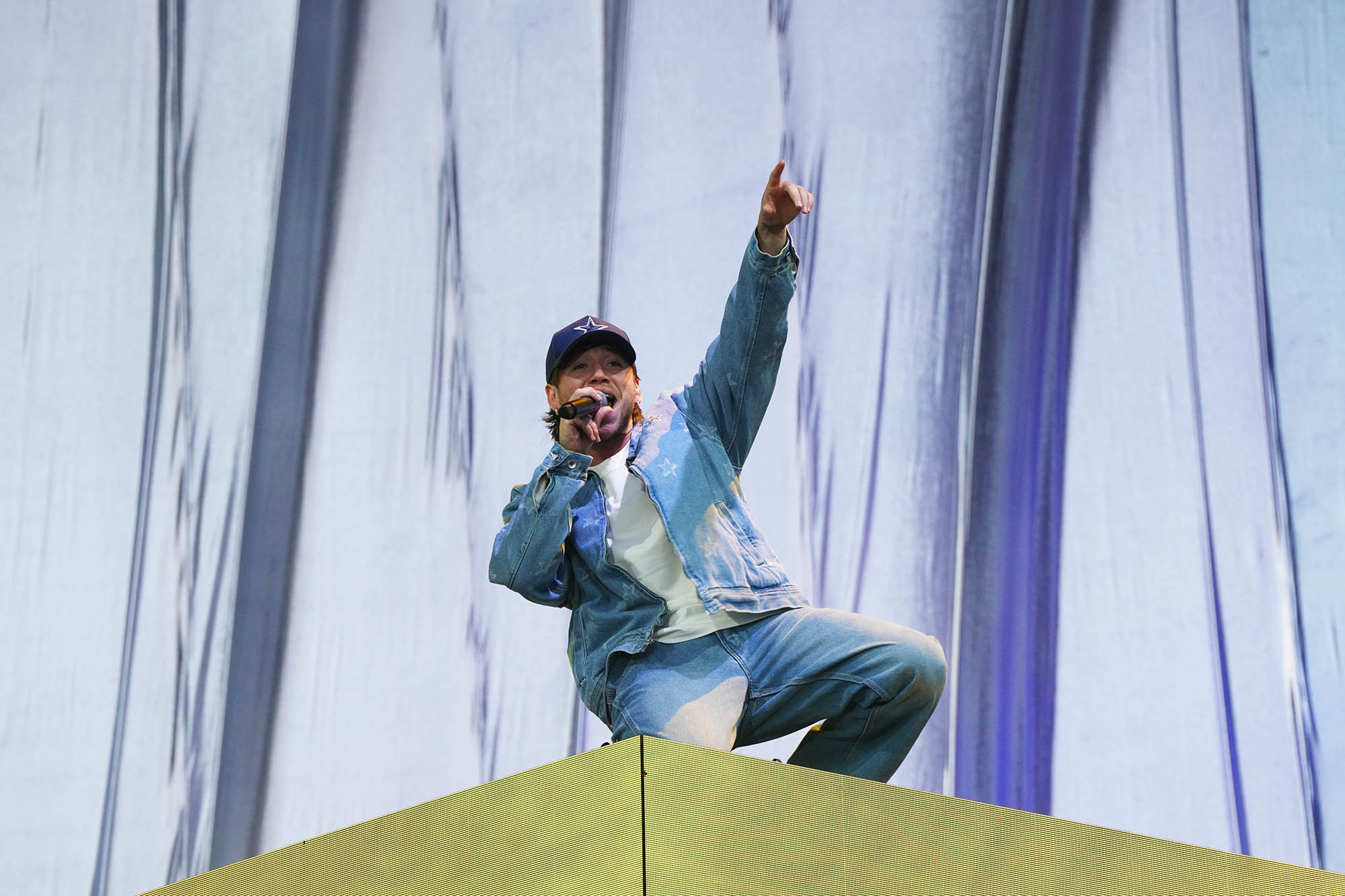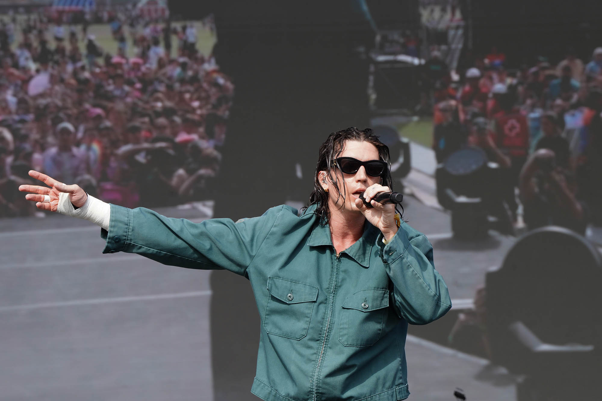 En una fecha (y un festival en general) caracterizado por la producción de vestuario y el impacto visual, Lewis Capaldi sobresalió por la negativa. El baladista escocés salió a escena de pantalón y remera negros y zapatillas deportivas, y sin gestos que un brazo en alto dio comienzo a su set con “Survive”, una canción de resiliencia que da nombre a su más reciente EP, pero que tiene también un giro autobiográfico: en 2023, Capaldi anunció su retiro temporal de los escenarios para tratarse por un Síndrome de Tourette, por lo que el tema es también un retrato de su propia supervivencia ante esta adversidad. La obra de Capaldi se mueve entre el sufrimiento a corazón abierto y un muy particular sentido del humor: basta con ver los títulos de sus discos (Divinely Uninspired to a Hellish Extent y Broken by Desire to Be Heavenly Sent, traducibles como “Divinamente carente de inspiración hasta un punto infernal” y “Quebrantado por el deseo de ser enviado al cielo”, respectivamente) para lograr descifrarle el tono.