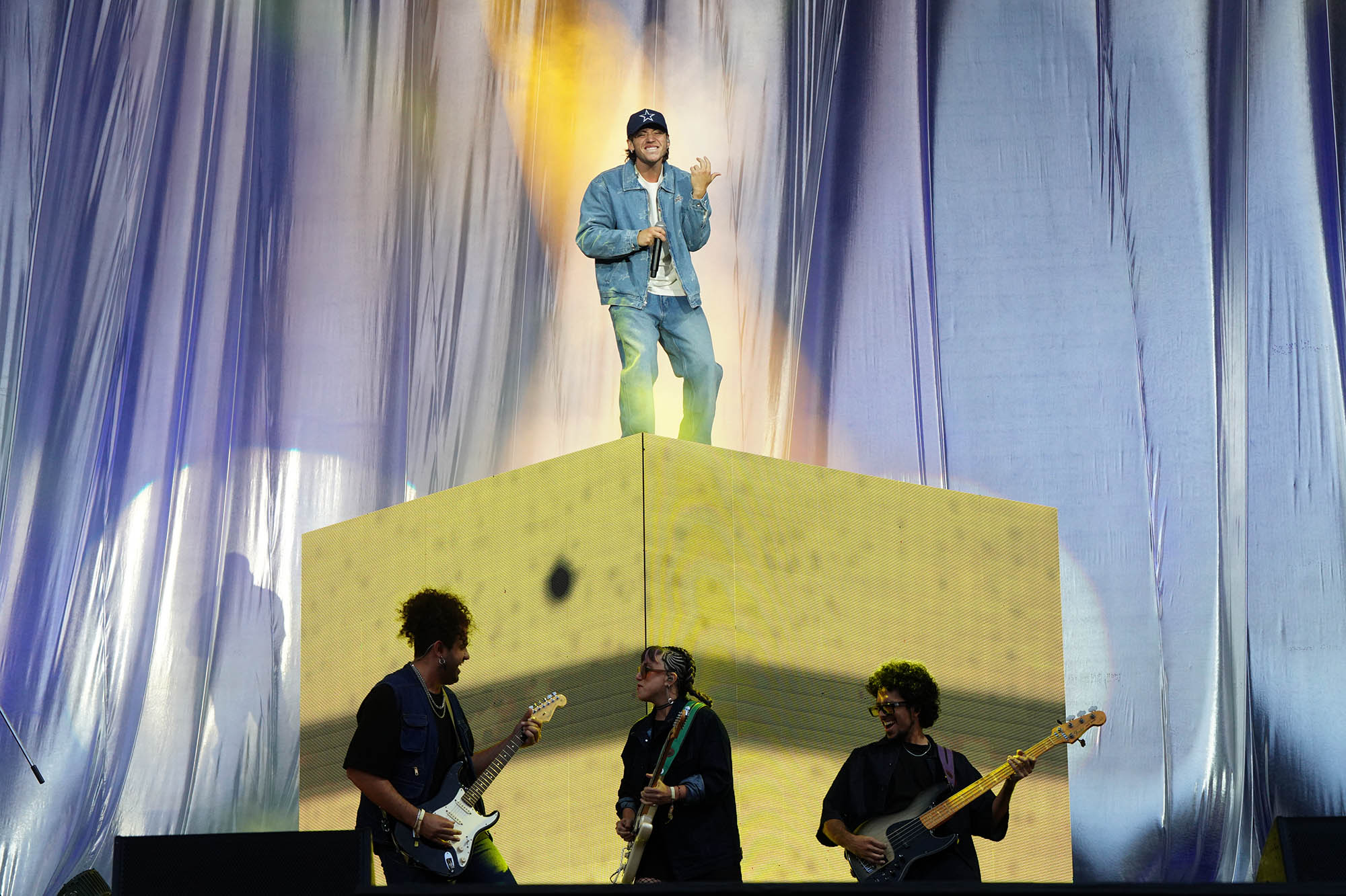 Cuestiones de agenda: LANY lanzó su último disco ¡ayer!, por lo que cuarta visita a la Argentina (segunda en contexto de un Lolla) obligó a su público a aprenderse el nuevo repertorio de un día para el otro. La banda liderada por Paul Klein arrancó su set con “Soft”, el tema que da a su flamante obra, y que bien le sienta como calificativo posible para su música, rótulo que los californianos aceptan sin esquivar el bulto. Con más o menos intensidad, sus canciones tienen un andamiaje pop de alta carga emocional: después de ese comienzo devocional, LANY ajustó las clavijas con “Why” y le puso ritmo a un show que se permitió llegar a la pista del baile, pero siempre con mesura. A lo largo de su show, Klein pasó de estar al frente, para luego sumarse como segunda guitarra o como tecladista, según lo ameritara la situación. Aún con tres visitas a cuestas que fueron creciendo en convocatoria, el vocalista no dejó pasar oportunidad para agradecer la predisposición de un público que reconocía como ajeno (“Chappell tiene los mejores fans del mundo”, dijo). Y justo cuando parecía que su prédica iba poco más allá de los conversos, el hit “Super Far” terminó de convencer a los indecisos.