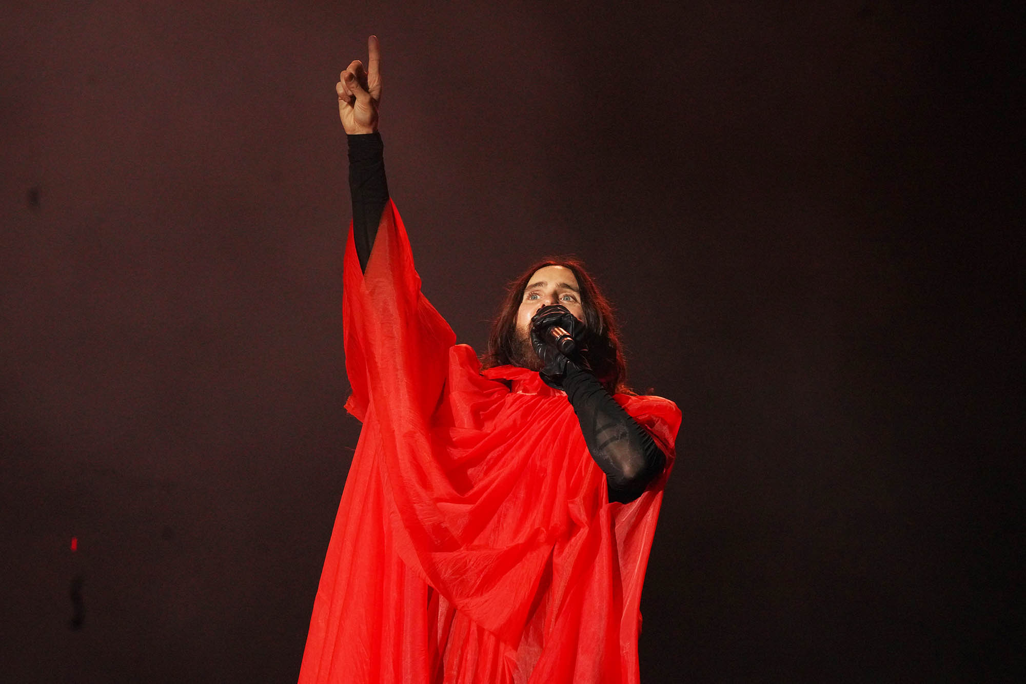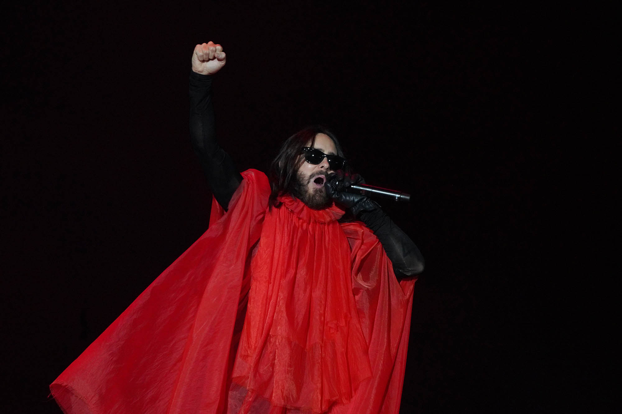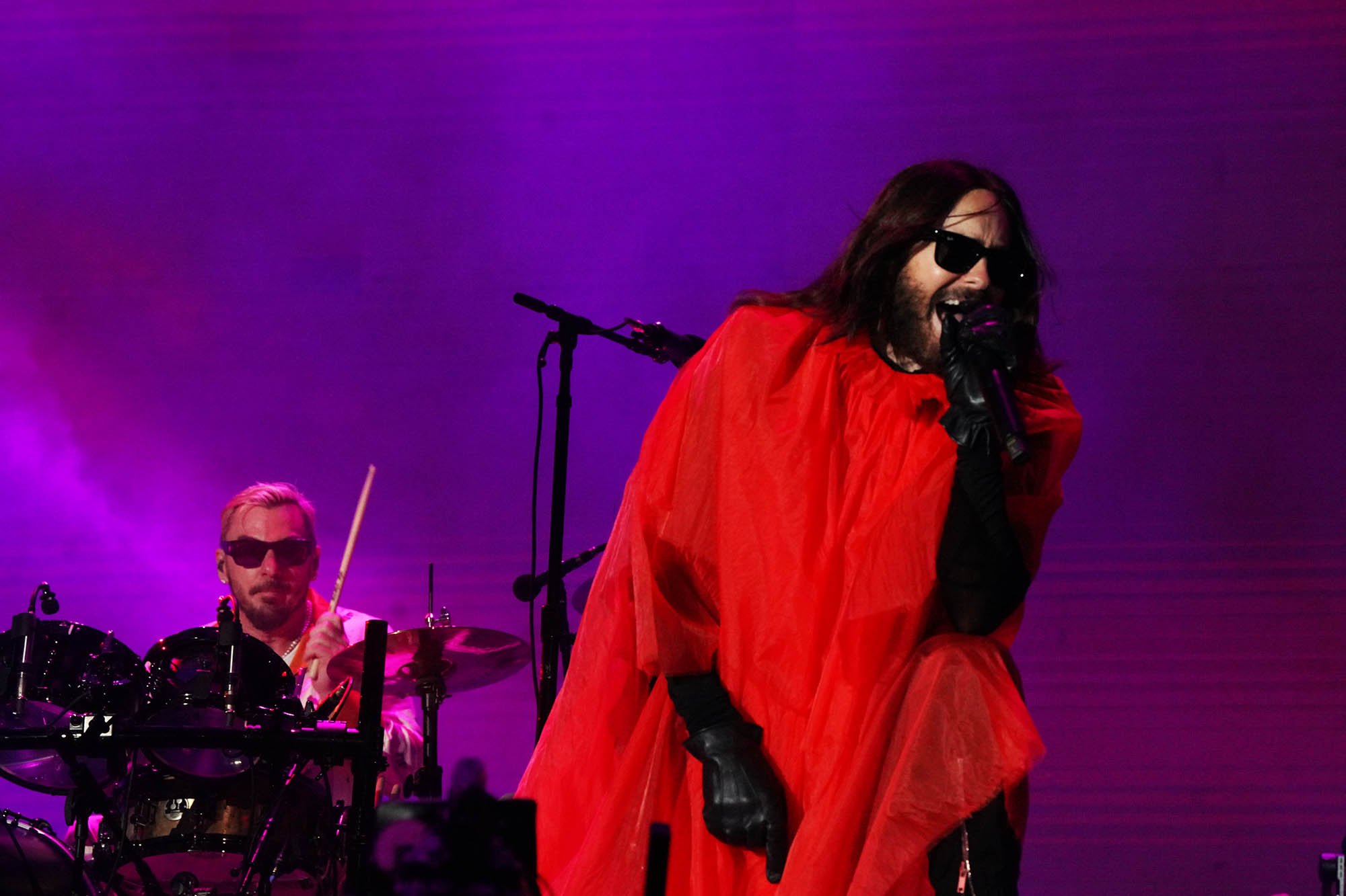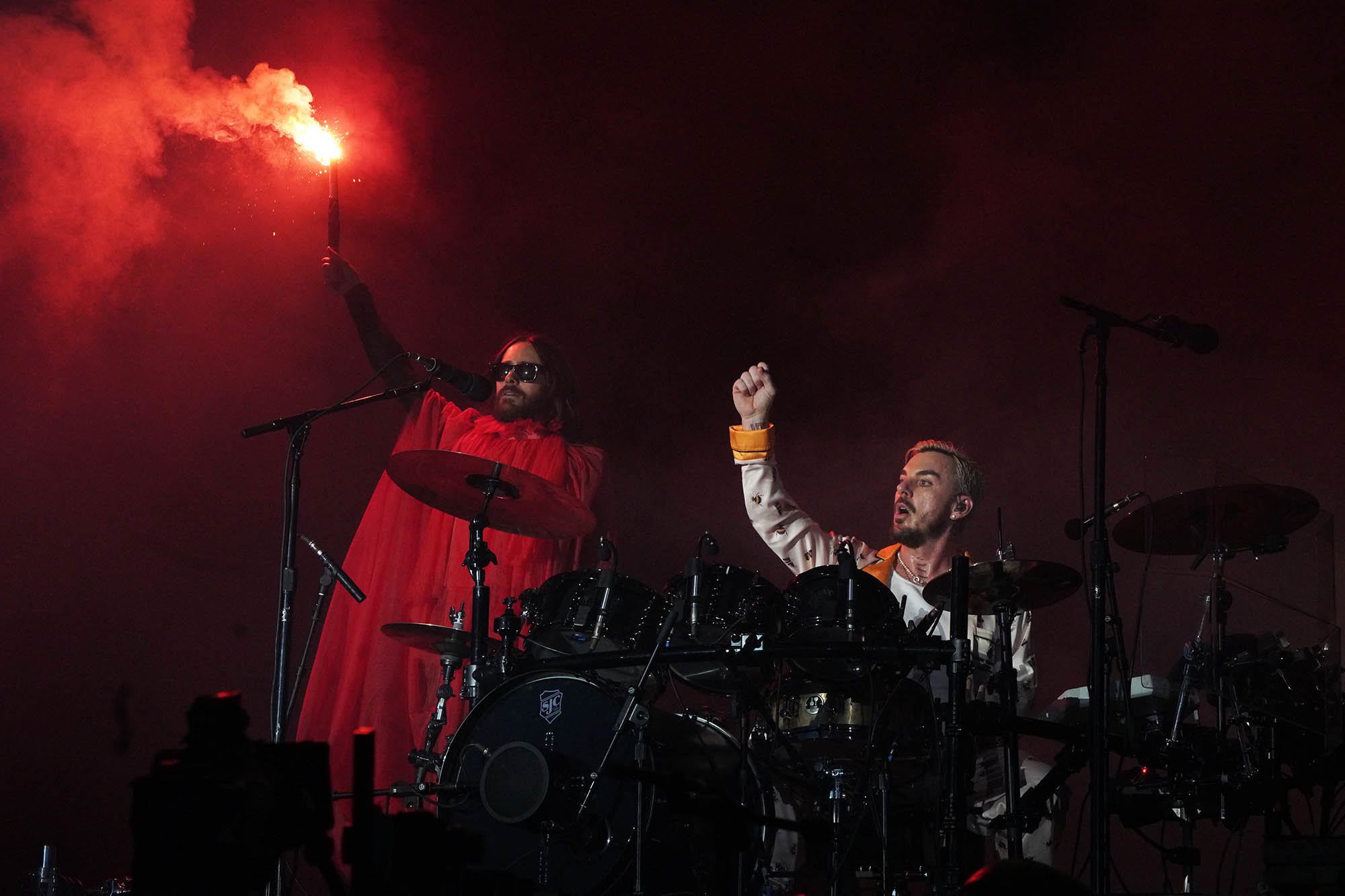 Jared Leto está tan seguro del magnetismo de su figura que no necesita mucho más en el escenario de Thirty Seconds to Mars. Su hermano Shannon en una batería montada sobre una tarima al borde del tablado y un multi instrumentista ubicado casi fuera de plano bastaron para una descarga de un rock tan sufrido como épico. El actor devenido músico tuvo que soportar en más de una ocasión ser acusado de tener actitudes mesiánicas, algo que pareció haber aprendido a usar a favor de su persona escénica. Ataviado con un vest rojo furioso de Kostume, Leto fue a su manera un pastor guiando a su rebaño, rodeado de llamaradas y fuegos de artificio en “Up in the Air” y “Kings and Queens”, y también capaz de imponer órdenes para pedir una rueda de mosh con reglas de convivencia en armonía para “This is War”. Esa idea de comunión con sus seguidores fue un paso más allá en “Rescue Me”, donde un grupo de fans fue invitado al escenario a cantar junto a él el tema de America, de 2018. Luego de lograr traducir su poder de convocatoria a un mar de luces de celulares encendidos en el campo, Leto invitó al escenario a Patricio Sardelli, de Airbag, para que sumase pirotecnia guitarrera a “The Kill (Bury Me)”, el primer hit del grupo. Y por si eso no era suficiente, Paulo Londra hizo una tímida aparición en escena para “Attack”, en la que intentó transmitirle sin éxito algún festejo mundialista a su anfitrión, antes de que todo cerrase con “Closer to the Edge”.