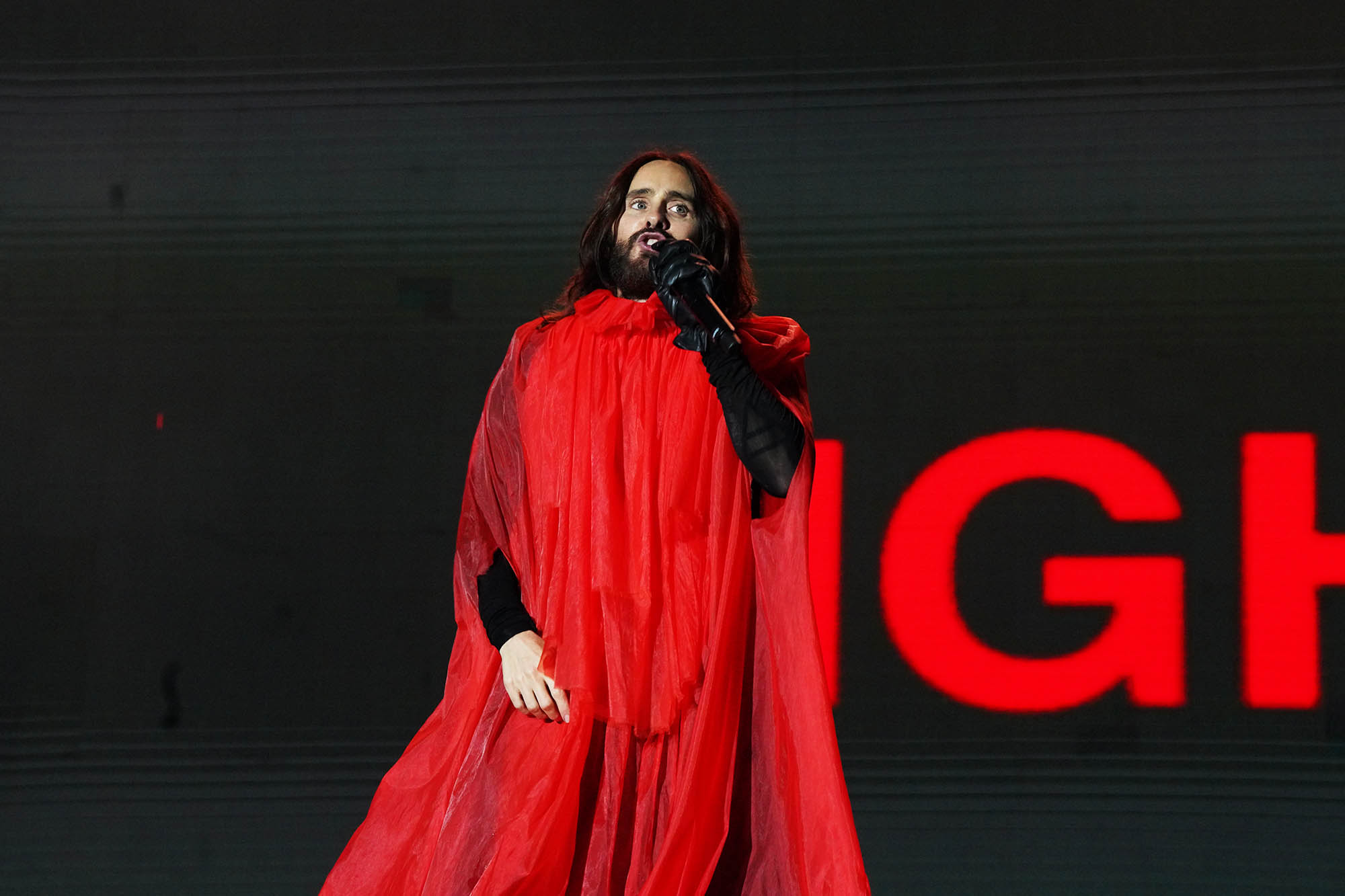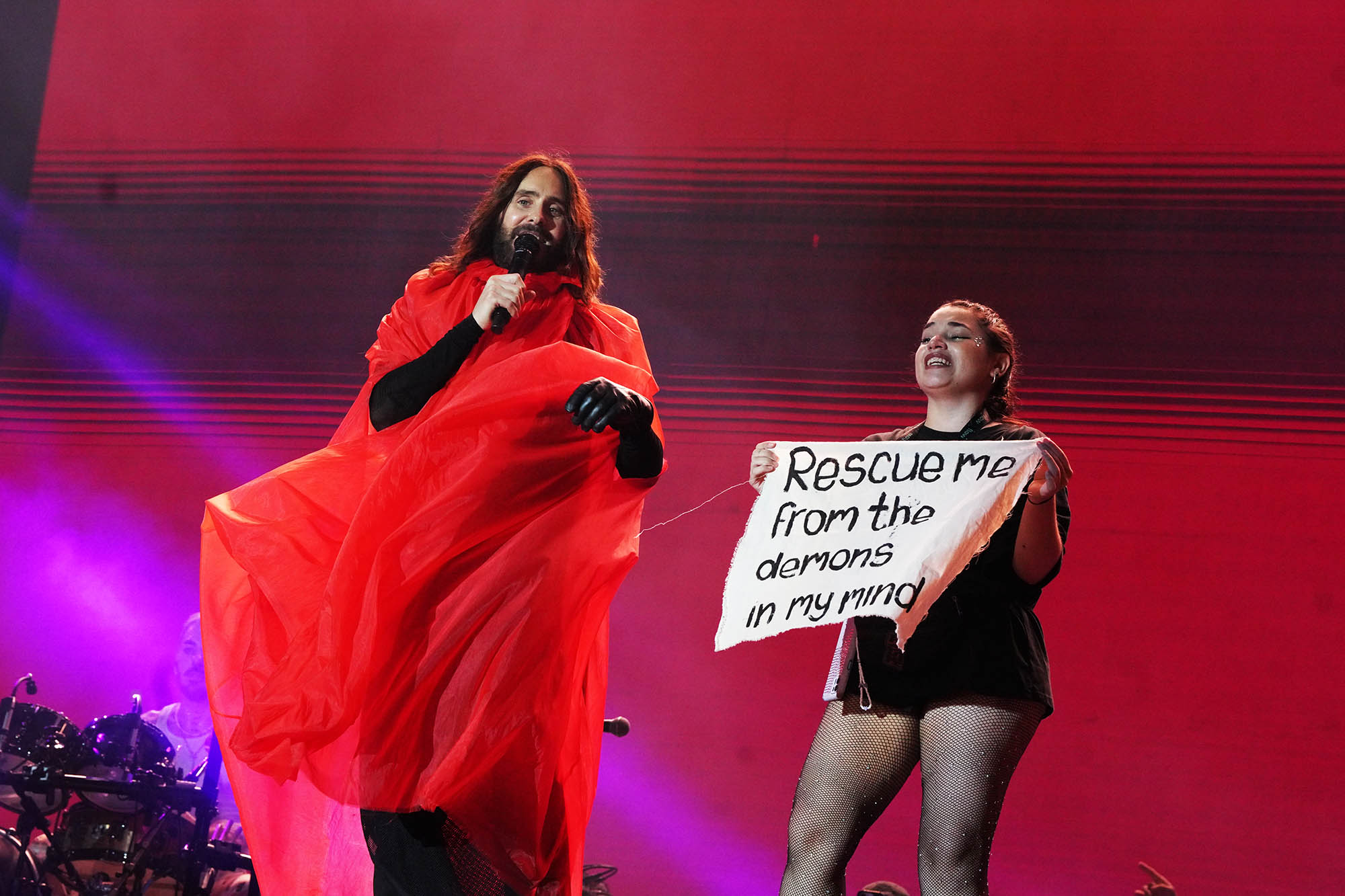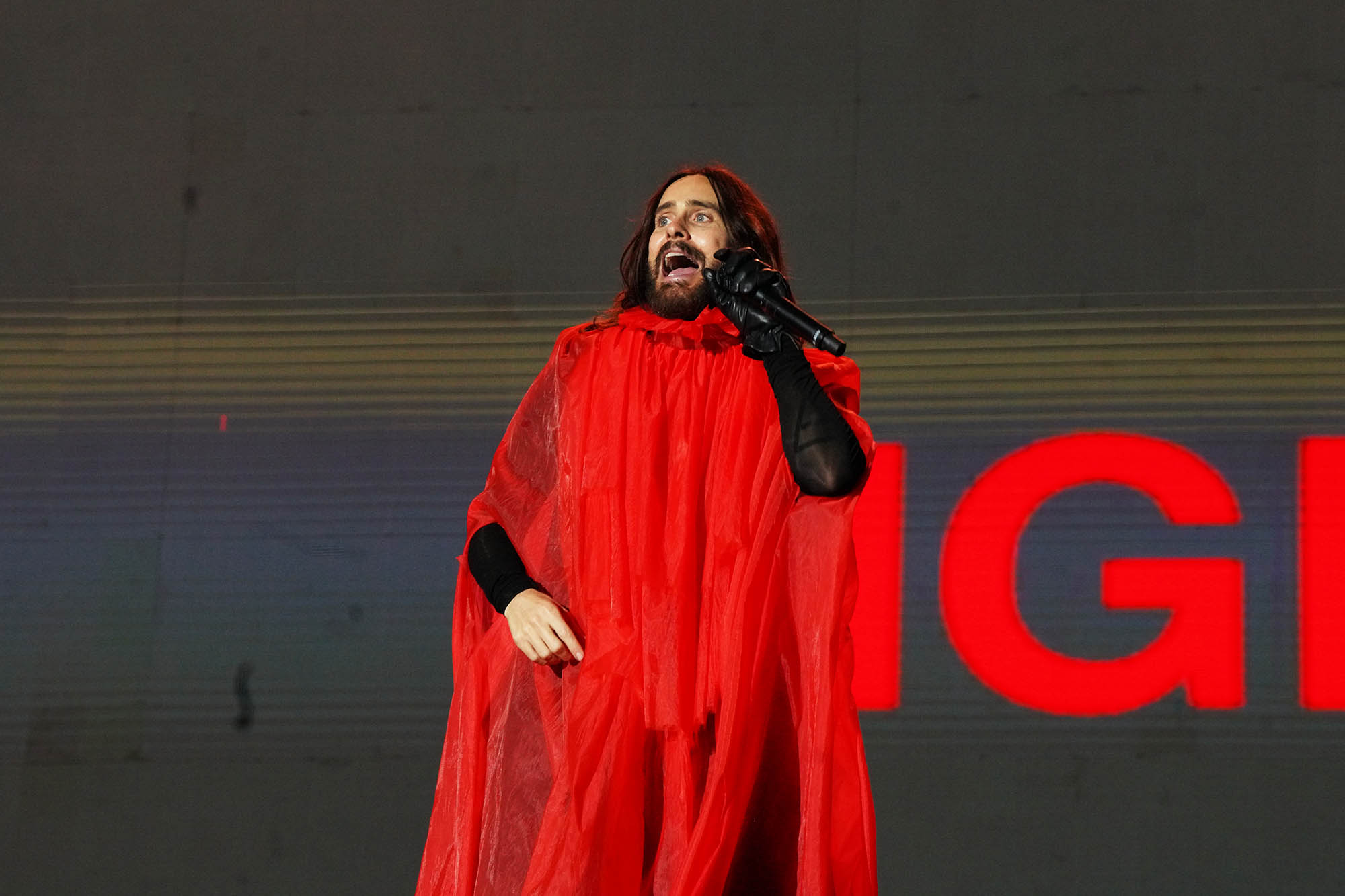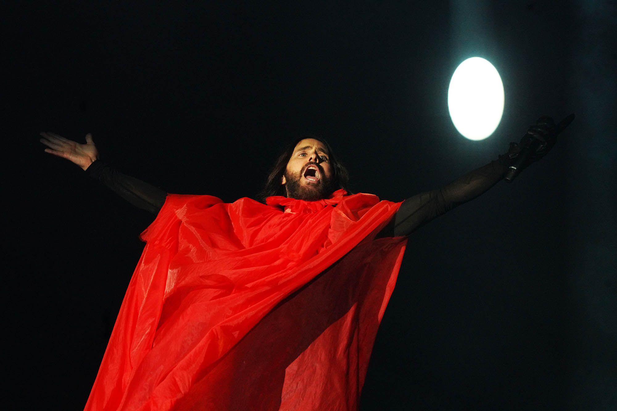 Jared Leto está tan seguro del magnetismo de su figura que no necesita mucho más en el escenario de Thirty Seconds to Mars. Su hermano Shannon en una batería montada sobre una tarima al borde del tablado y un multi instrumentista ubicado casi fuera de plano bastaron para una descarga de un rock tan sufrido como épico. El actor devenido músico tuvo que soportar en más de una ocasión ser acusado de tener actitudes mesiánicas, algo que pareció haber aprendido a usar a favor de su persona escénica. Ataviado con un vest rojo furioso de Kostume, Leto fue a su manera un pastor guiando a su rebaño, rodeado de llamaradas y fuegos de artificio en “Up in the Air” y “Kings and Queens”, y también capaz de imponer órdenes para pedir una rueda de mosh con reglas de convivencia en armonía para “This is War”. Esa idea de comunión con sus seguidores fue un paso más allá en “Rescue Me”, donde un grupo de fans fue invitado al escenario a cantar junto a él el tema de America, de 2018. Luego de lograr traducir su poder de convocatoria a un mar de luces de celulares encendidos en el campo, Leto invitó al escenario a Patricio Sardelli, de Airbag, para que sumase pirotecnia guitarrera a “The Kill (Bury Me)”, el primer hit del grupo. Y por si eso no era suficiente, Paulo Londra hizo una tímida aparición en escena para “Attack”, en la que intentó transmitirle sin éxito algún festejo mundialista a su anfitrión, antes de que todo cerrase con “Closer to the Edge”.