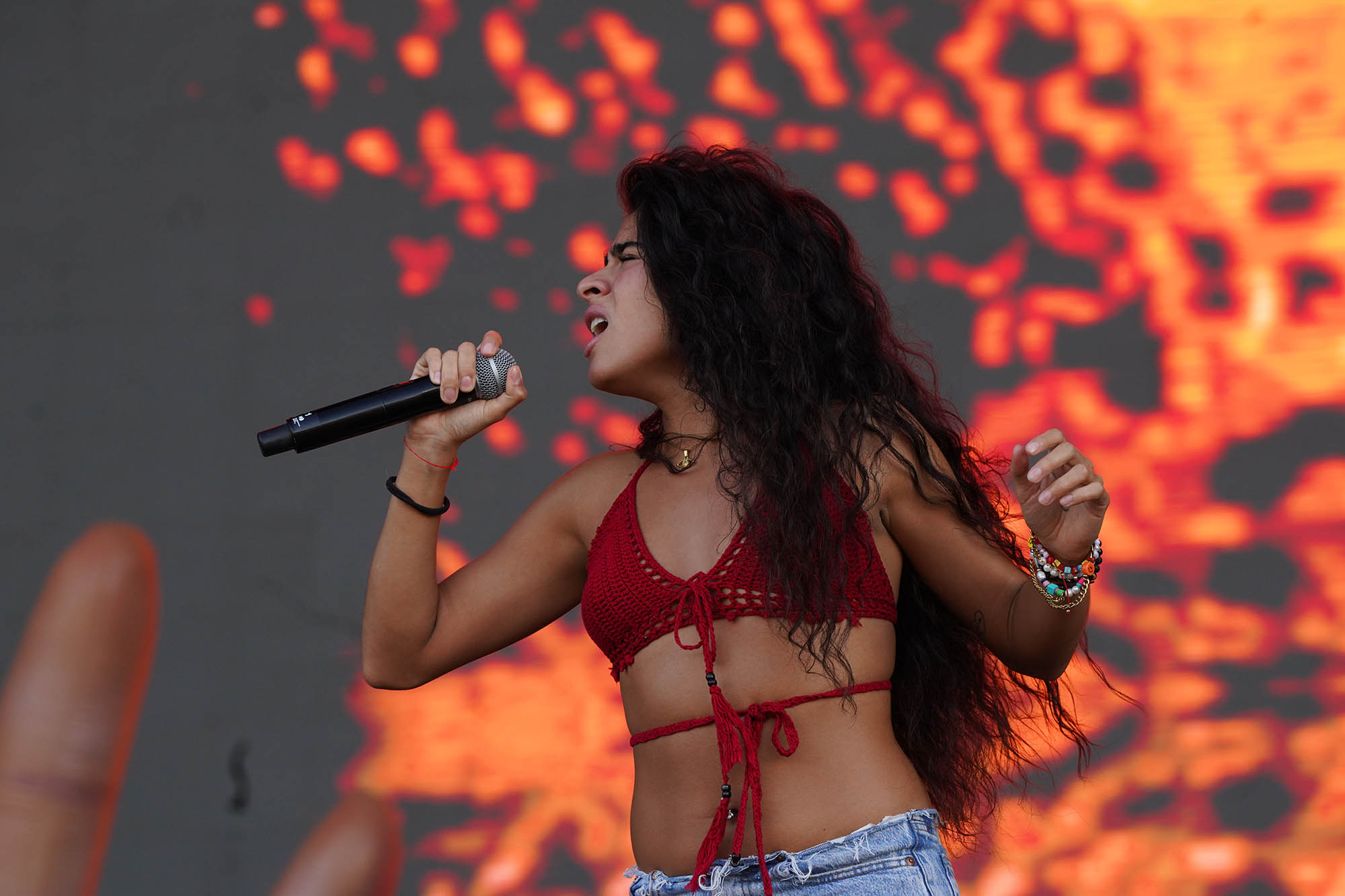 “¿Que por qué hago un tema de Dua Lipa? Porque lo escribí yo”. Plantada en el escenario Samsung, Jessie Reyez parecía querer explicarle al público de Lollapalooza que ya estaba en esto mucho antes de cortar singles por su cuenta. Así fue que sonó “One Kiss”, el simple que la británica grabó con Calvin Harris, pero que compuso esta canadiense de 34 años, que no dudó en celebrar su debut porteño en un plan lúdico. Reyez se la pasó alternando entre el español y el inglés para hablar con sus seguidores, no dudó en calzarse una camiseta de la selección con su nombre que le arrojaron desde el campo durante “Jeans” y no dudó en sanar en público las heridas de una relación tóxica en “Still C U” y en una versión reducida de “Mutual Friend”. Promediando su set, se permitió homenajear a Bob Marley, uno de sus máximos referentes, con la versión de “Is This Love” que grabó para la biopic del jamaiquino, y el desenfado destrabó un nuevo nivel cuando invitó al escenario a sus padres para que bailasen con ella al son de “Qué calor”, de Pibes Chorros.