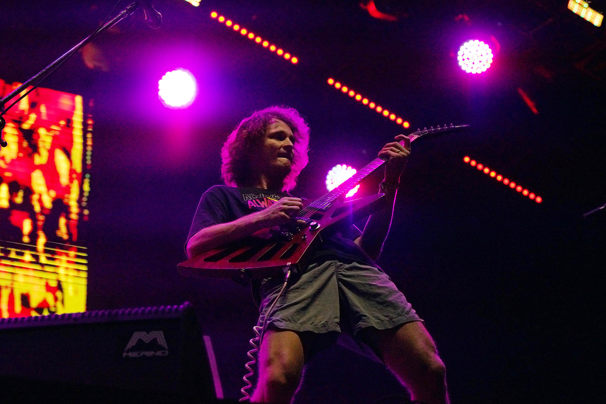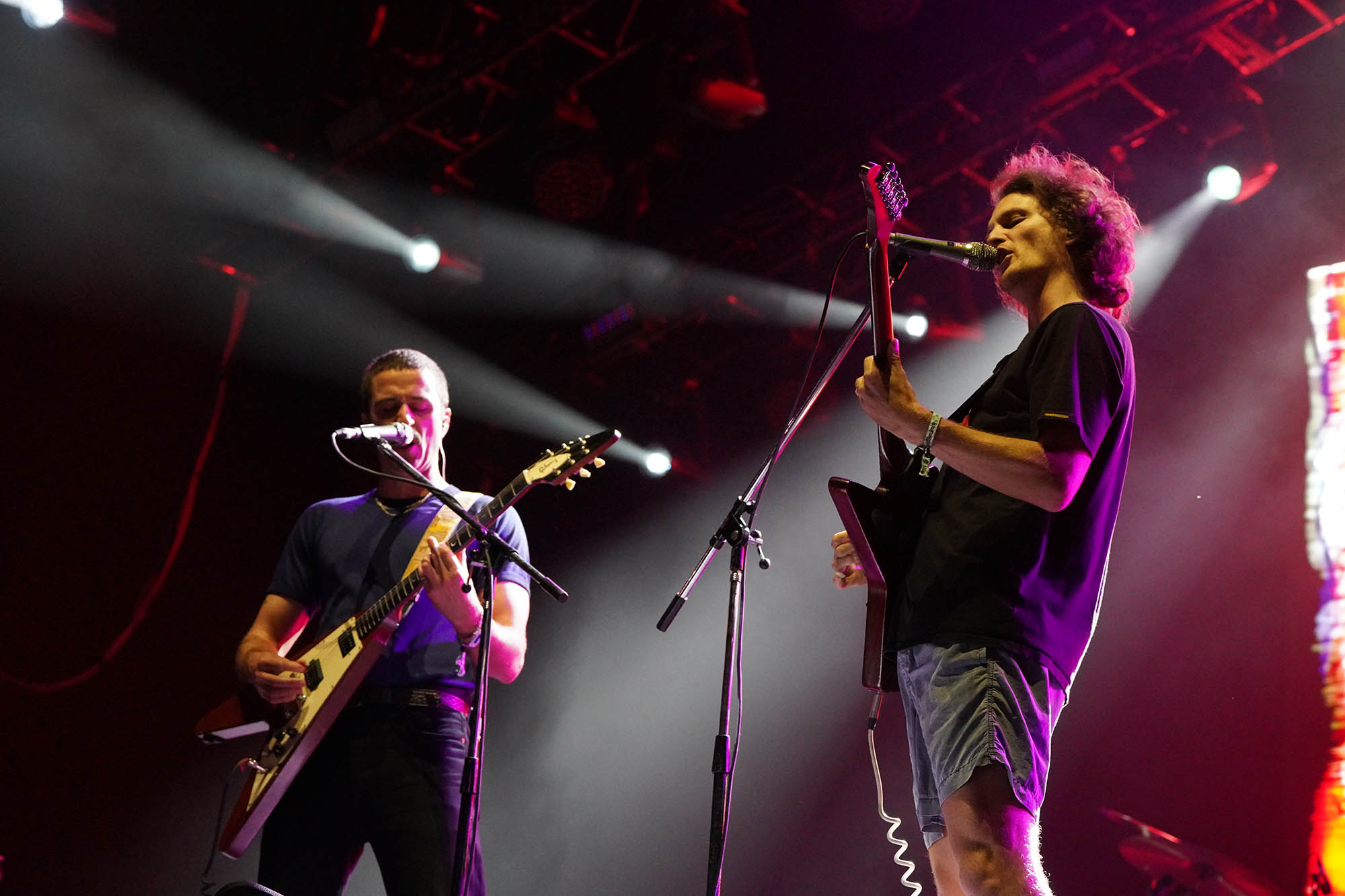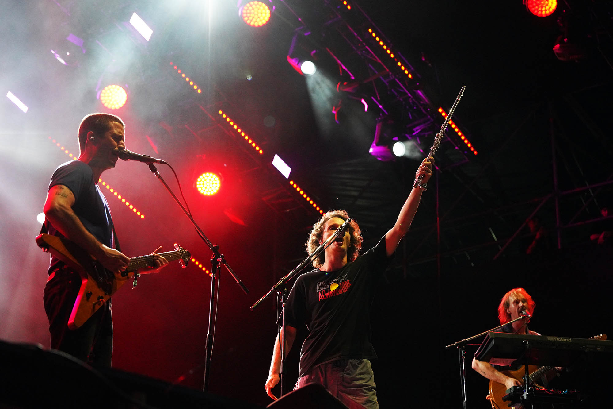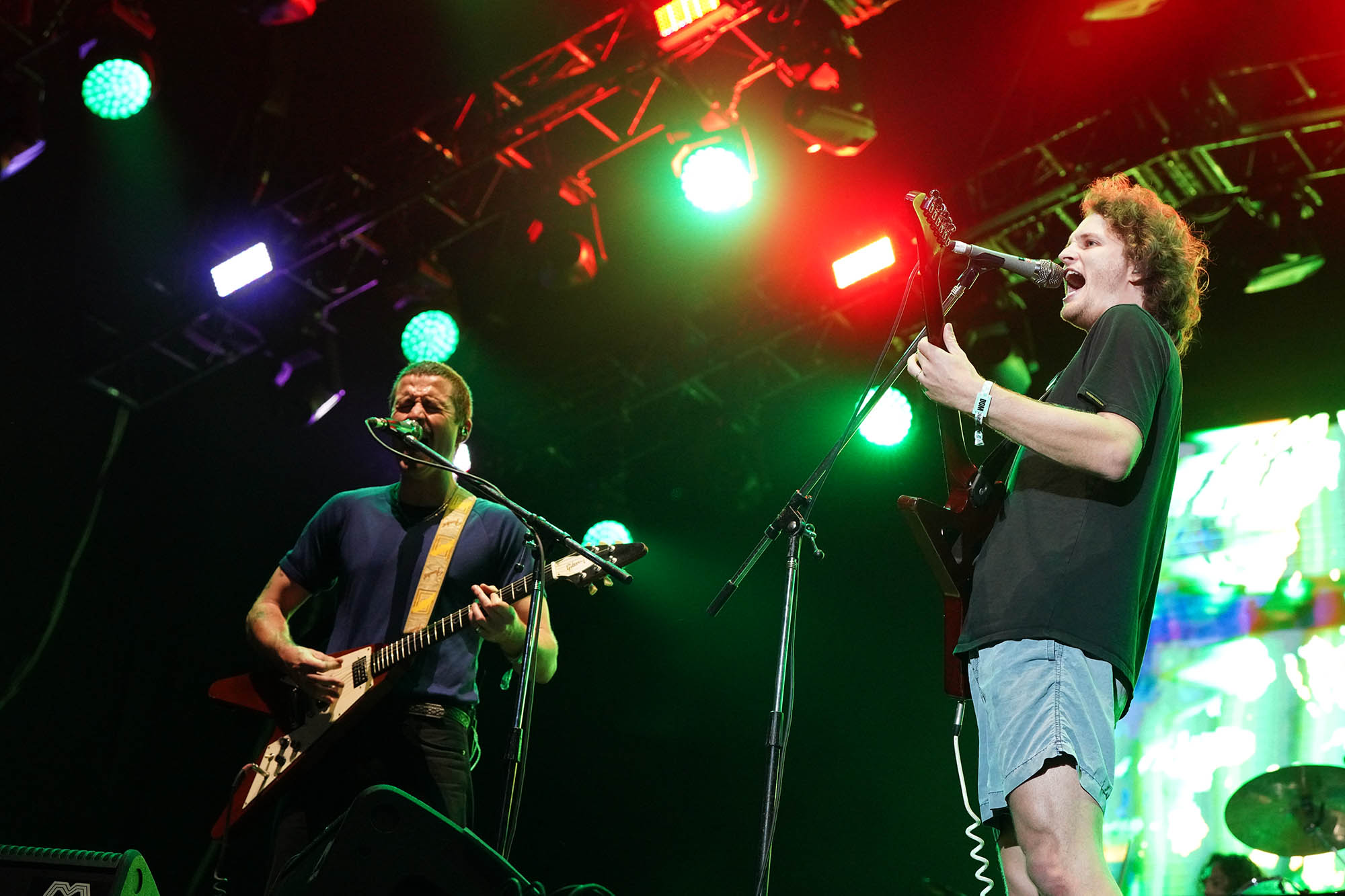 Al mismo tiempo en el que el colombiano Feid desplegaba sobre el cielo un arsenal de 300 drones como novedad de un despliegue de reggaetón de fórmula, King Gizzard & the Lizard Wizard propuso en el Alternative una propuesta completamente distinta. Se sabe: la banda australiana cuenta con una nada despreciable discografía de ¡veinticinco! discos, por lo que ir a ver un show suyo es entregarse al factor sorpresa. Su debut en Lollapalooza se centró en su faceta más conocida, ahí donde la psicodelia, el stoner y el proto metal se dan la mano, como lo evidenciaron “Mars for the Rich” y “Gaia”, tocadas a tres guitarras y con espacio para un extenso solo de batería de Michael Cavanagh. Después del despliegue de “Gila Monster” (que sonó como si Godzilla caminase por el predio), King Gizzard reformuló en plan valvular el trip lúdico de “Trapdoor”, donde Stu Mackenzie pasó de las seis cuerdas a la flauta traversa. Poco después, el tecladista Ambrose Kenny-Smith tomó su armónica para colar algo de “Got My Mojo Workin’” en “Cut Throat Boogie”, antes de esa prueba a la paciencia llamada “The Dripping Tap”, veinticinco minutos de pesadez y lisergia, tan solo una muestra de lo que serán capaces de invocar en su sideshow junto a Winona Riders.