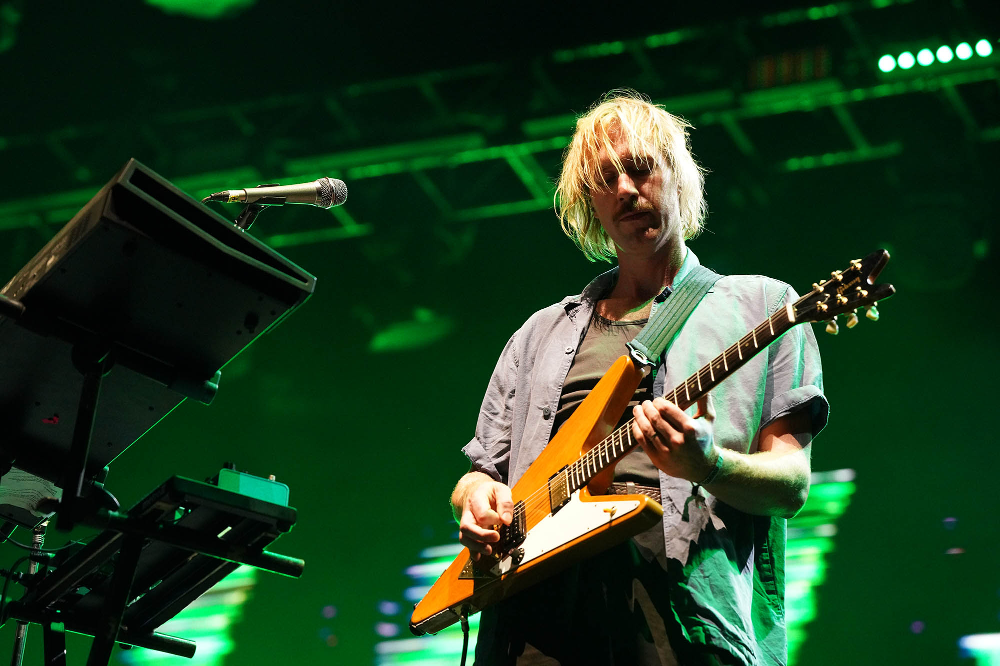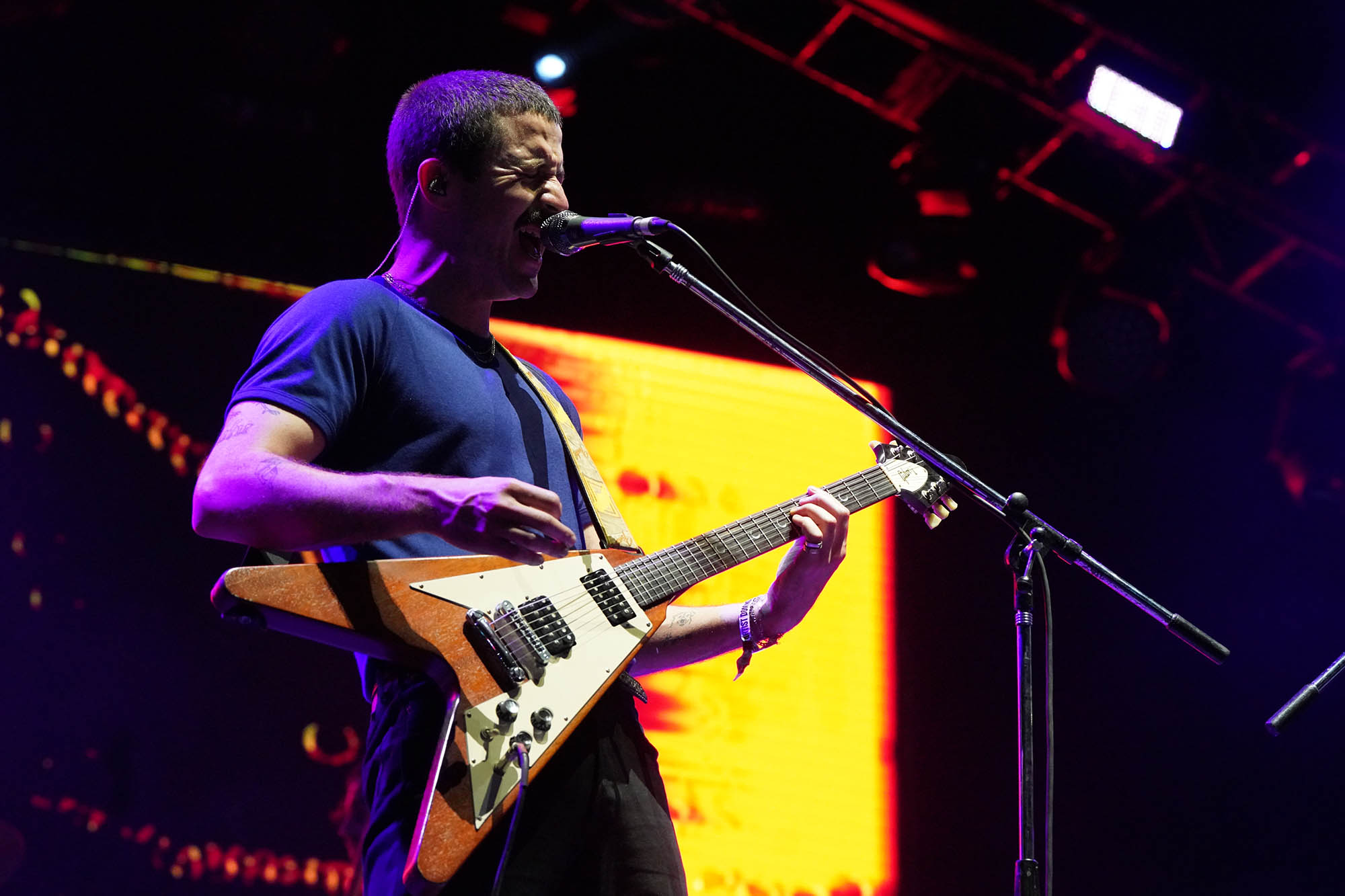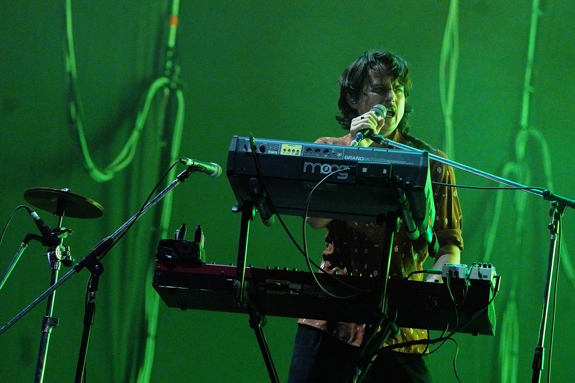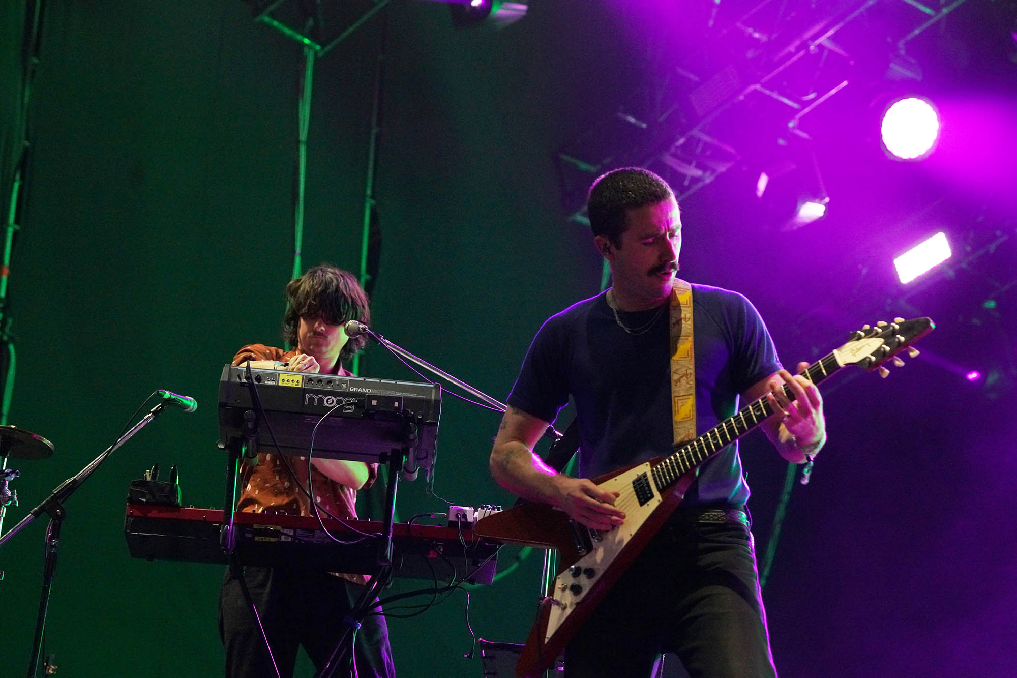 Hechos y no opinión: Bandalos Chinos fue la única banda argentina en tocar en un horario central en el escenario principal durante todo el festival. El dato deja de ser una sorpresa si se contemplan los últimos dos años de la banda de Béccar: discos grabados en el laboratorio sonoro Sonic Ranch en Texas, incontadas giras por el continente con tickets agotados en todas sus escalas y una convocatoria cada vez más ascendente en su propio país. Con “Isla” y “Mi fiesta” fueron una entrada en calor para que la banda terminase de agarrar envión en “Una propuesta”, mitad Gloria Gaynor, mitad carnaval carioca. Parte de ese crecimiento de Bandalos Chinos y el peligro de los delirios de grandeza que acarrea la fama fueron bien retratados en “Paranoia Pop”, una suerte del “Fame” de Bowie potenciado por las guitarras de Iñaki Colombo y Tomás Verduga y con un cambio de letra como pequeño statement político (“No hay plata para el duty free”, bromeó Goyo Degano). Y si el día anterior ese tablado había tenido a Phoenix ocupando ese mismo lugar, es posible trazar un rastro de influencia de la banda de Versalles en “Sin vos no puedo”, el tema que abre El Big Blue. El acomodo de piezas sumó aires latinos a “Departamento” y dio lugar al terreno baladístico de “Demasiado”, hasta que todo se puso en su lugar de la mano de ese hit imbatible llamado “Vámonos de viaje”.