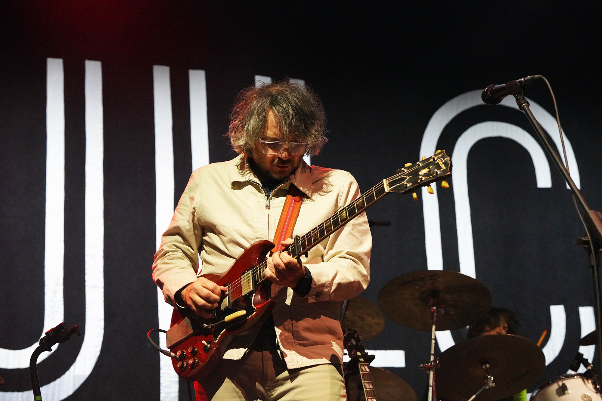 A su manera, el tema sentó las bases del recorrido posterior: “You Are My Face” también fue una canción basada en las falsas alarmas, esta vez una balada crepuscular y minúscula que sin preaviso tiene unos chispazos fuzz, como si Tom Verlaine cayera sin preaviso a un ensayo de The Byrds. Por eso, después de la marchante “Whole Love”, “Either Way” volvió a tener a la fragilidad como punto de partida para abrirle el paso a arreglos de guitarra que se pasearon como la bandada que se arremolina en la portada de Sky Blue Sky. El diálogo en las seis cuerdas entre Cline y Tweedy alcanzó su punto justo en “Impossible Germany”, que gracias a la serie The Bear quedó inmortalizada como la representación sonora de su Chicago natal, y que tuvo al público tarareando cada fraseo, algo que dejó atónitos a los propios músicos. Pero como no todo es complejidad, Wilco dio con una forma particular de belleza basada en la simpleza y la emotividad con “Jesus, Etc.”, puesta en contraste con el lamento country blusero de “Hate It Here”.