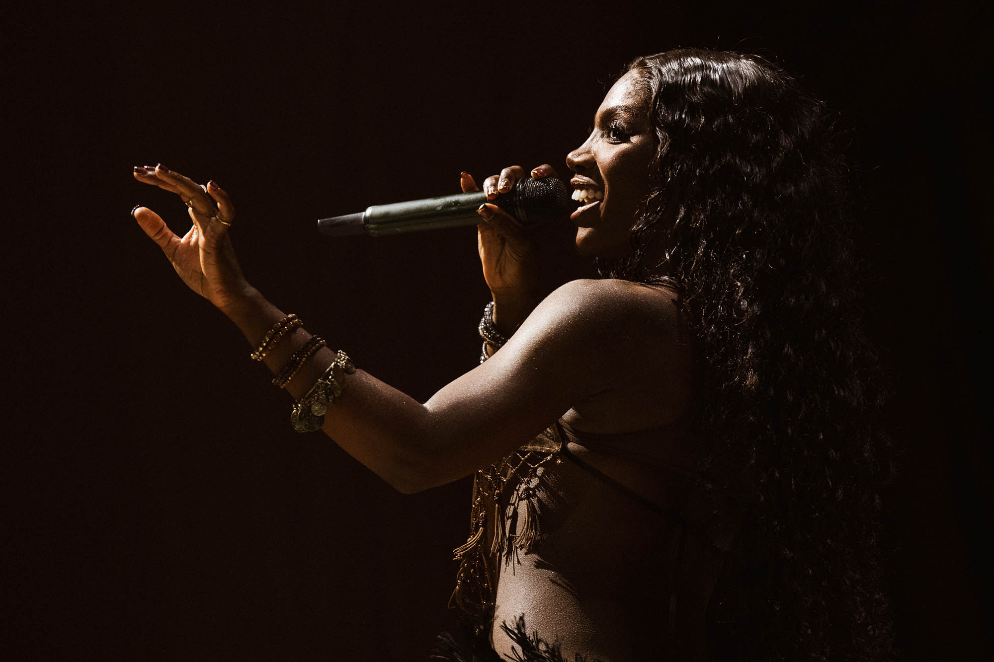 En escena, Carpenter se mueve entre el aire de diva glamorosa de la época de oro, baldazos de cultura pop y una sobresexualización premeditada que busca poner en crisis el lugar de las mujeres en la industria (y si no quedó claro, vayan a buscar la tapa -y el nombre- de su último disco, Man’s Best Friend). Su show se construyó como una gran narrativa pop a fuerza de hits y cuerpos de baile, aunque también hubo lugar a un intimismo más calculado como en “Slim Pickins”, antes de que “Manchild” volviera a encender la mecha.