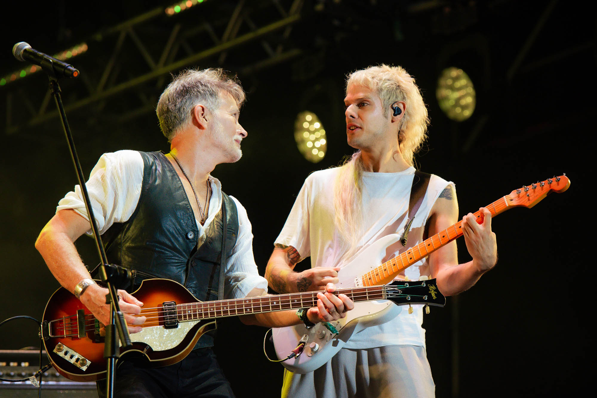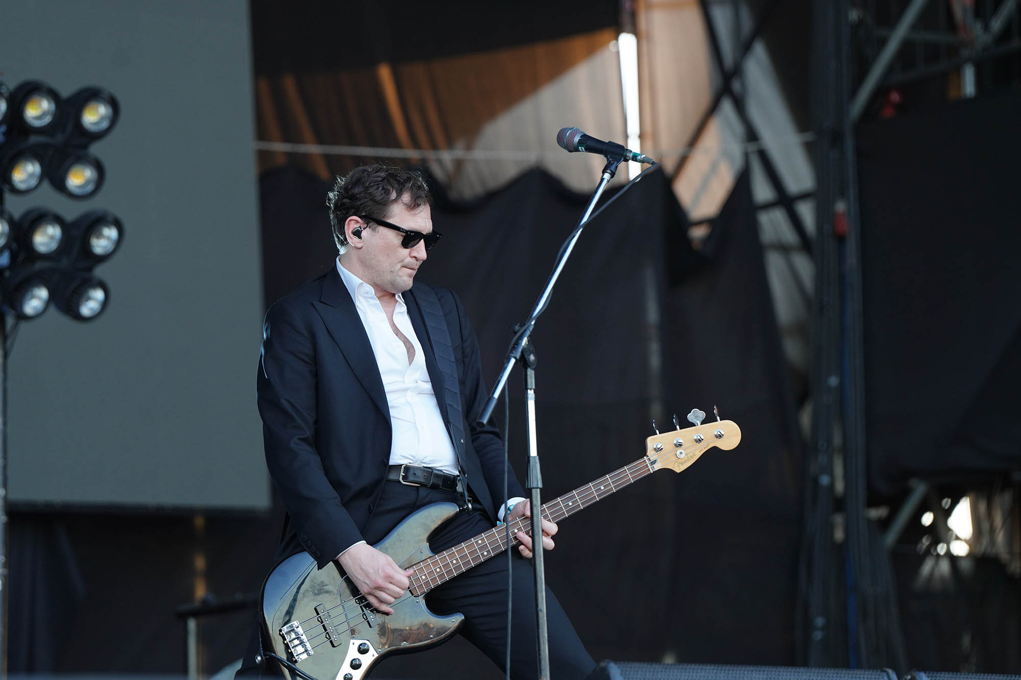 Una tarde soleada no parecía el contexto ideal para la séptima visita de Interpol, pero la banda neoyorquina parecía tener todo calculado. Aunque su show en Lollapalooza comenzó con los últimos rayos del sol, la luz solar comenzó a despedirse de a poco en su set, justo mientras la lista empezaba a irse hacia rincones más oscuros. “All the Rage Back Home” y “No I in Threesome” ofrecieron cierta luminosidad que pareció extinguirse con la llegada de “Slow Hands”, el hit de Antics (2004), interpretado con tanta intensidad que no parecía importar que solo quedaran el vocalista Paul Banks y el guitarrista Daniel Kessler como miembros originales (el bajista Carlos Dengler abandonó en 2010, y desde 2023 el baterista Sam Fogarino no sale de gira por una lesión en su columna). Pero a las ausencias se las combate con paliativos, y allí estuvo la seguidilla de “Obstacle 1”, “Evil” y “Narc” para llevar a cabo esa tarea. Ya en la oscuridad de la noche, durante la coda emotiva de “PDA” y la sofocante “Pioneer to the Falls” el escenario se vio embellecido gracias a dos bolas de espejos gigantes que bañaron el tablado en haces iridiscentes. Hasta en sus momentos más oscuros, la luminosidad se cuela entre las grietas de la música de Interpol.