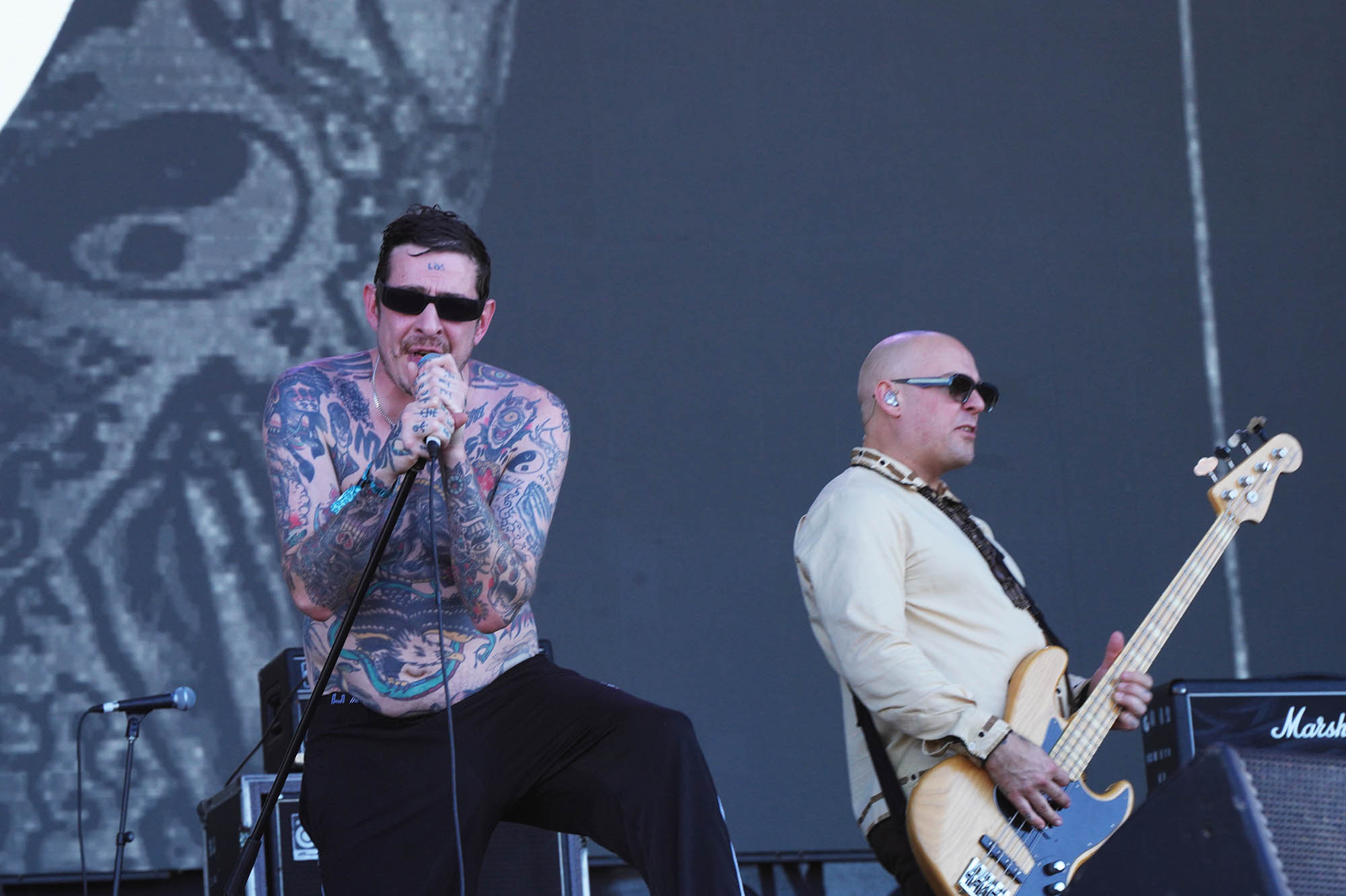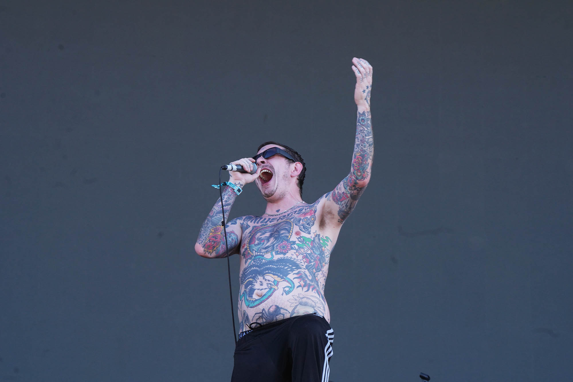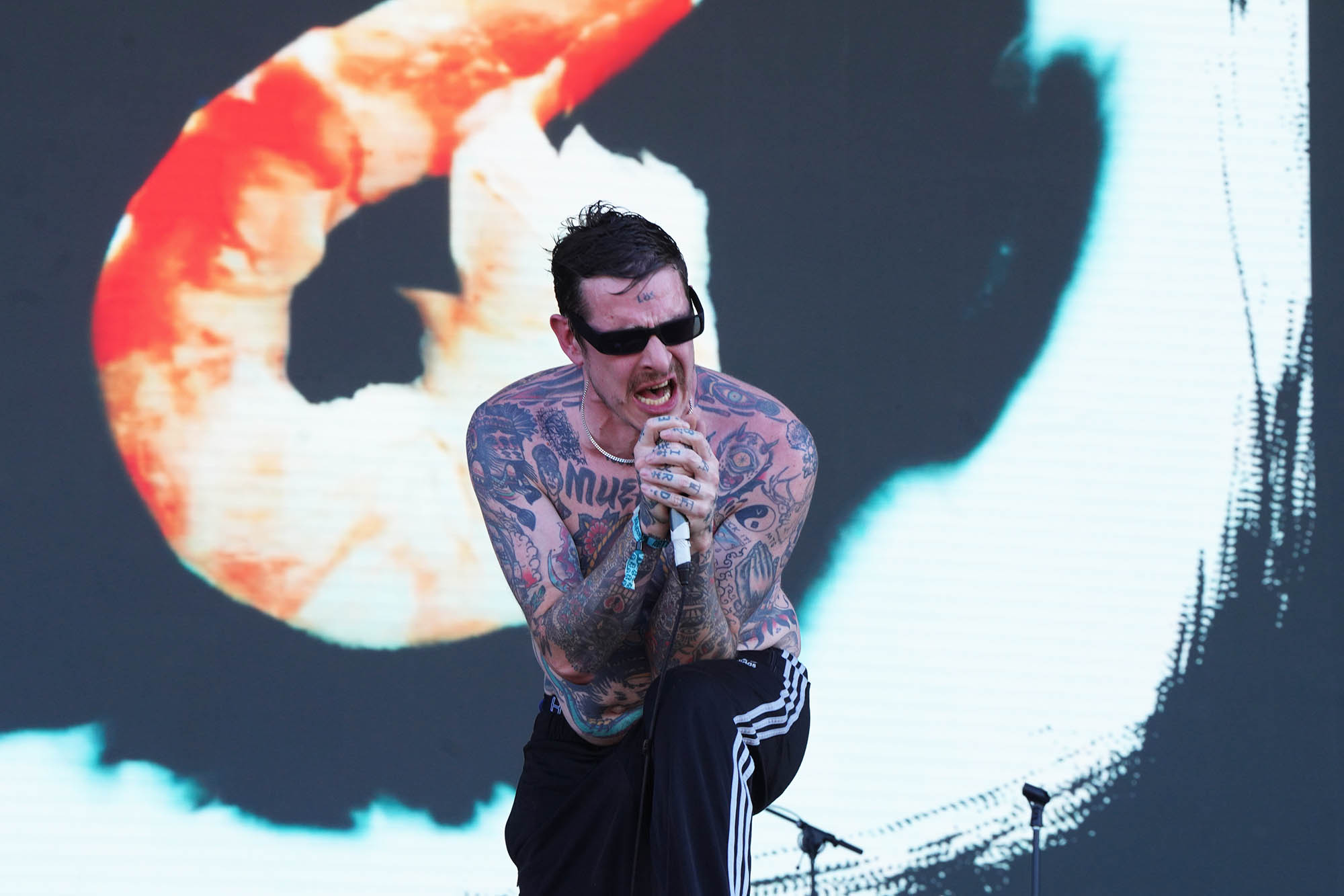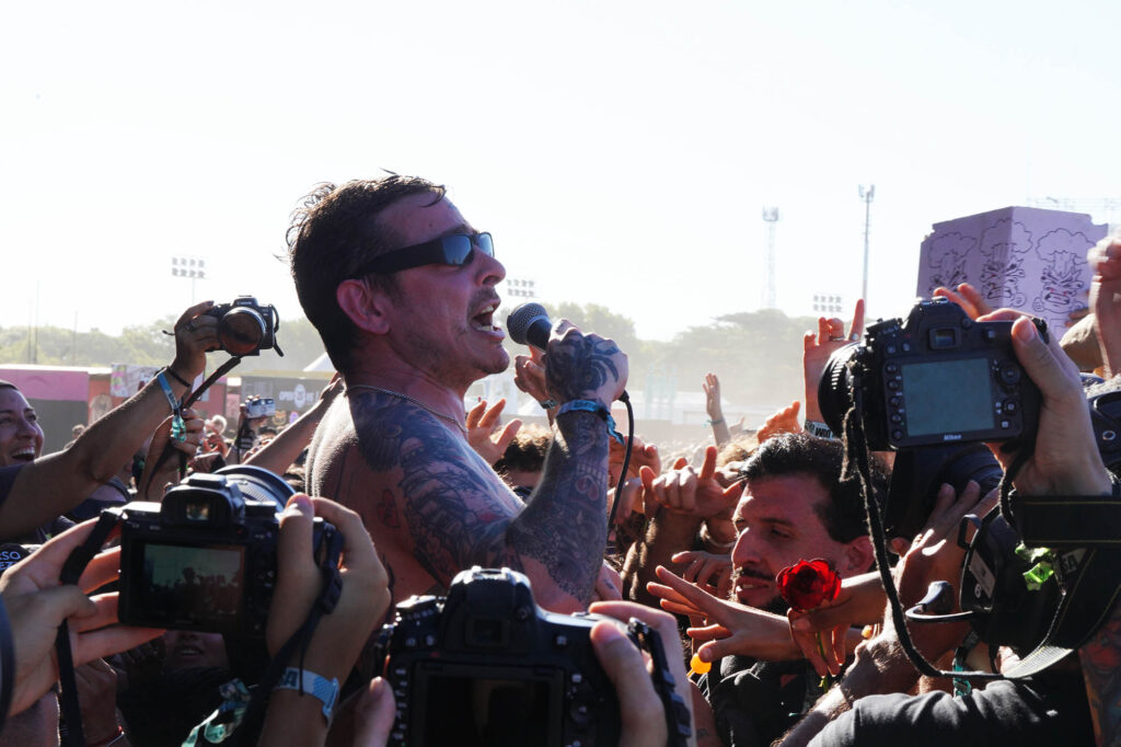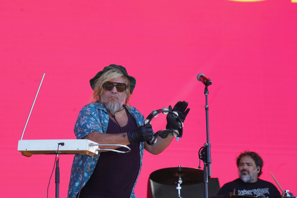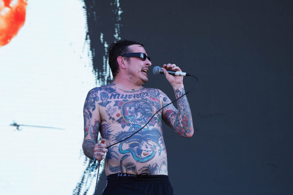 En la lista de pendientes de los grandes festivales internacionales, el nombre de Viagra Boys estaba escrito en mayúsculas y subrayado. La banda sueca lleva en su ADN una lectura cruda y visceral del post punk que emparenta con el costado más punzante de Sumo, en especial cuando Oskar Carls pasa de su guitarra a un saxo chirriante. Con su estética de integrante de la mafia rusa, Sebastian Murphy alimentó su usina interna a base de fernet tomado del pico para un show urgente que pegó fuerte de entrada (“Me suscribí al OnlyFans de tu mamá. Gasté 5 dólares al mes para ver fotos de sus muslos flácidos”, disparó en “Man Made of Meat”). Con Dillom encapuchado entre el público agitando el pogo, Viagra Boys se permitió algún guiño bailable sin perder la actitud barrabrava (“Ain’t No Thief”) antes de clamar por Palestina libre y declararle la guerra al fascismo en “Troglodyte”. En “The Bog Body” las referencias a Luca Prodan y cía volvieron a emerger en la superficie, y todo terminó con el tecladista Elias Jungqvist trepando al mangrullo en “Sports”, la antesala del caos avasallante que reinaría en los últimos 10 minutos de set con “Research Chemicals”, donde la frontera entre el arriba y el abajo del escenario se desdibujó completamente.