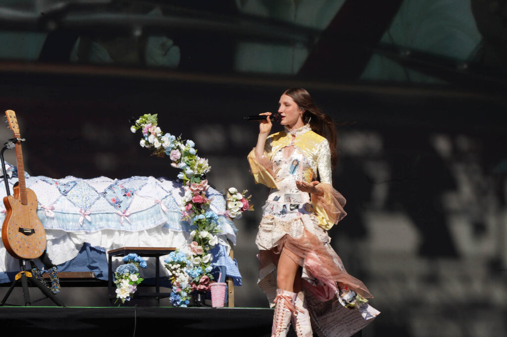 En plena sintonía con el público, pasadas “Tears” y “Feathers”, el paso de comedia de “Juno” tuvo a María Becerra como coprotagonista escénica desde el campo. Y si de explosiones pop se trata, “Please Please Please, “Don’t Smile” y “Espresso” cumplieron con creces su cometido.